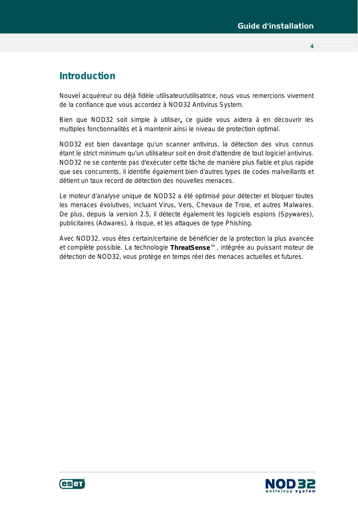 Ce guide faisant l'objet de mises à jour régulières en fonction des évolutions applicatives de NOD32, la dernière version actualisée est toujours disponible en téléchargement (au format PDF et en couleur) sur notre site Internet http://www.eset-nod32.fr et http://www.nod32.fr.