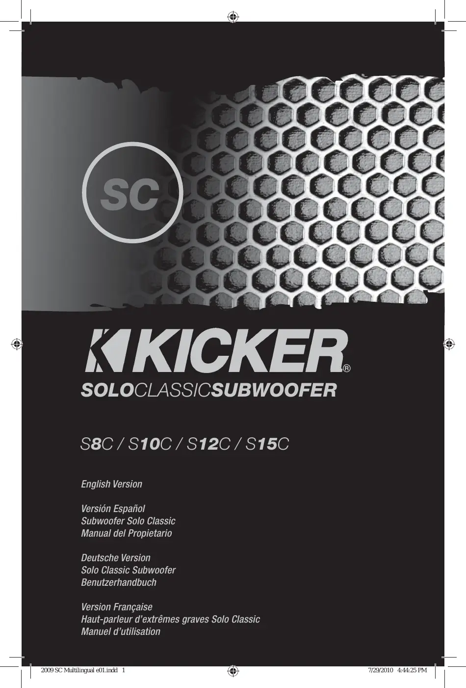 NOTA: Nous nous réservons le droit de modifier les spécifications et les performances indiquées ici. Consultez notre site www.kicker.com pour Obtir les informations les plus récentes. Pour tirer le meilleur parti du Subwoofer KICKER, nous conseillons d'utiliser des accessoires et des cables KICKER d'origine. Comptez deux semaines de rodage pour que le subwoofer attigne des performances optimes