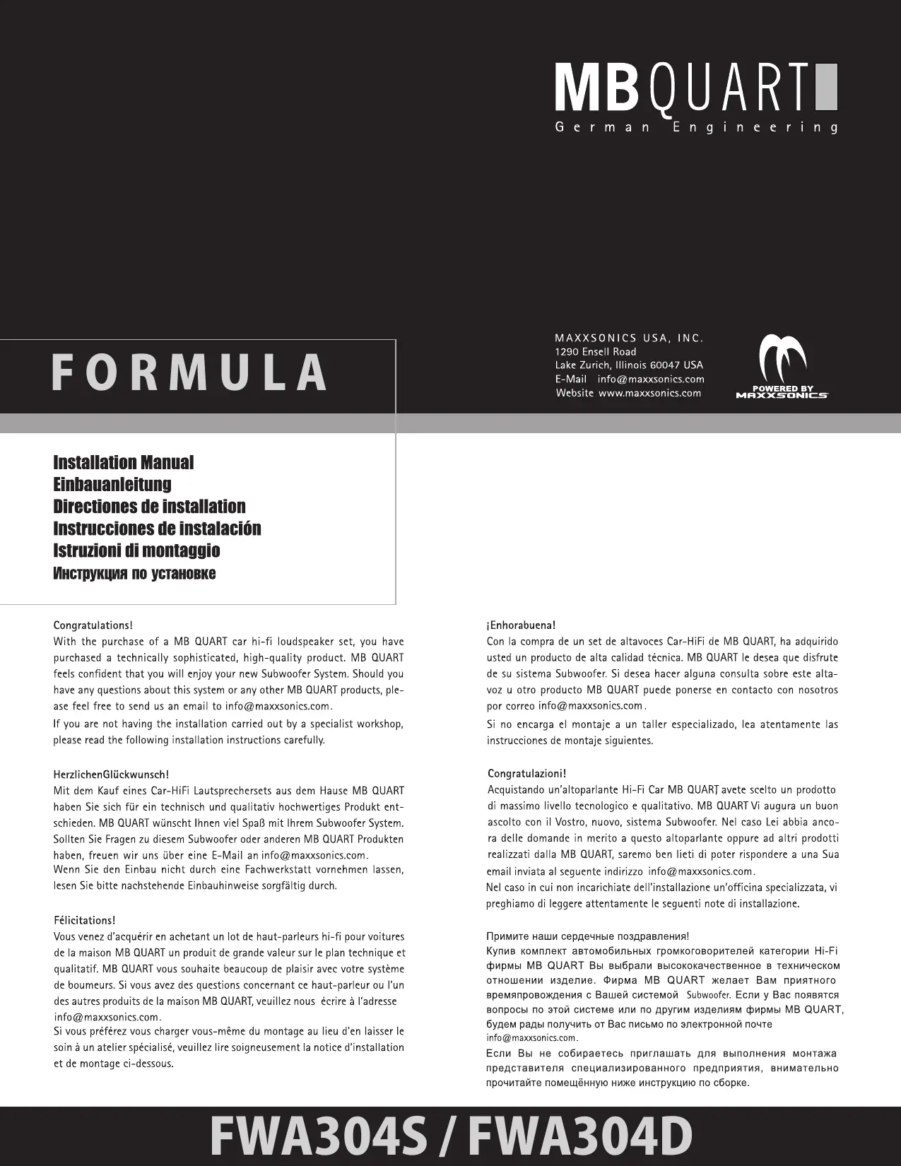 Vouves venez d'acquerir en achetant un lot de haut-parleurs hi-fi pour voitures de la maison MB QUART un produit de grande valeur sur le plan technique et qualitatif. MB QUART vous souhaite beaucoup de plaisir avec votre système de boumeurs. Si vous avez des questions concernant ce haut-parleur ou l'un des autres produits de la maison MB QUART, veillez nous écrire à l'adresse info@maxxsonics.com.