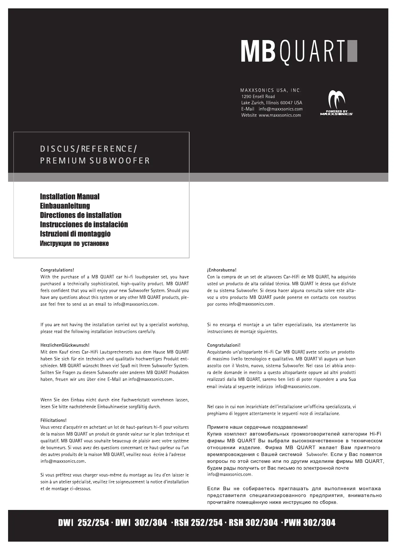Vous venez d'acquérir en achetant un lot de haut-parleurs hi-fi pour voitures de la maison MB QUART un produit de grande valeur sur le plan technique et qualitatif. MB QUART vous souhaite beaucoup de plaisir avec votre système de haut-parleurs. Si vous avez des questions concernant ce haut-parleur ou l'un des autres produits de la maison MB QUART, veuillez nous écrire à l'adresse info@maxxsonics.com.