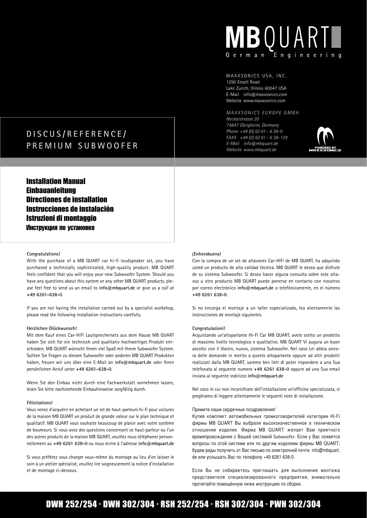 Vous venez d'acquérir en achetant un lot de haut-parleurs hi-fi pour voitures de la maison MB QUART un produit de grande valeur sur le plan technique et qualitatif. MB QUART vous souhaite beaucoup de plaisir avec votre système de haut-parleurs. Si vous avez des questions concernant ce haut-parleur ou l'un des autres produits de la maison MB QUART, veuillez nous téléphoner personnellement au +49 6261 638-0 ou nous écrire à l'adresse info@mbquart.de