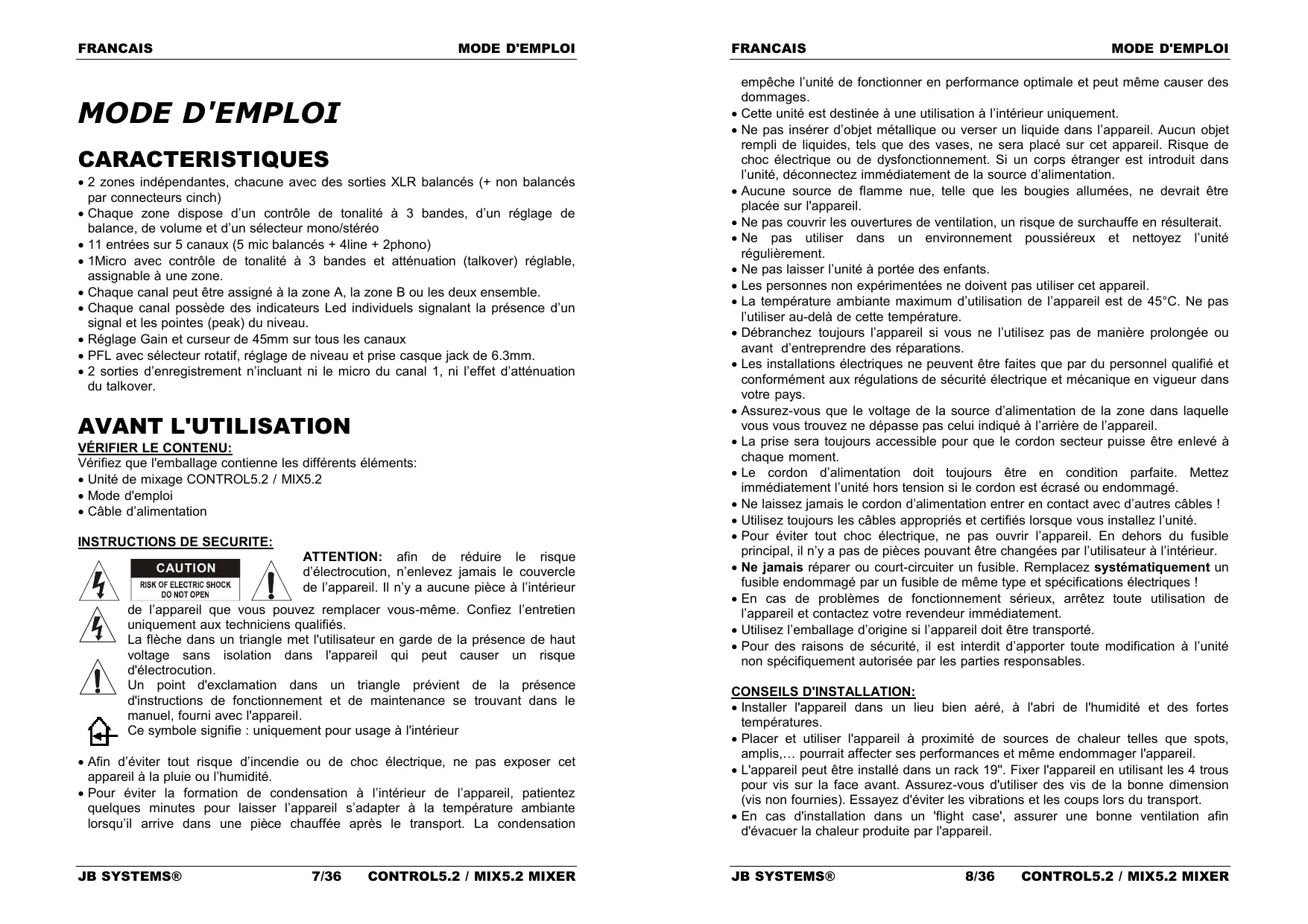 - Unité de mixage CONTROL5.2 / MIX5.2 Mode d'emploi Câble d'alimentation