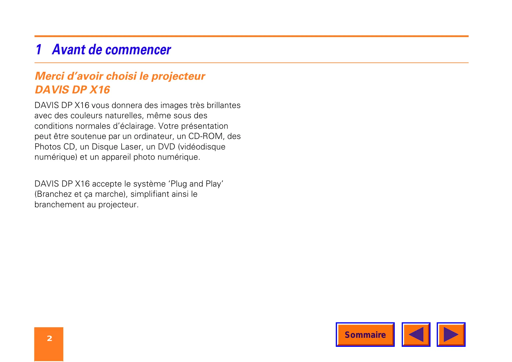 Merci d'avoir choses le projecteur DAVIS DP X16