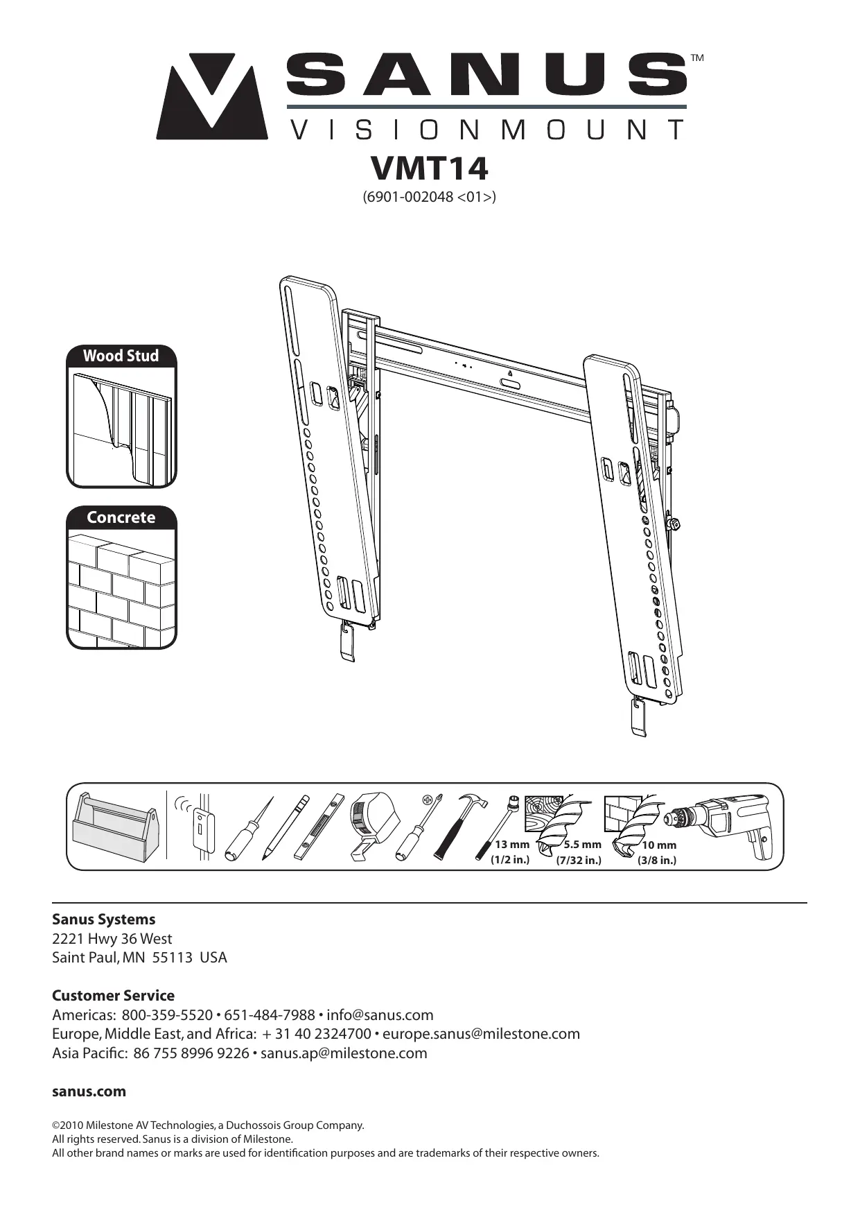 VMT14 - Support mural pour téléviseur SANUS - Notice d'utilisation et mode d'emploi gratuit