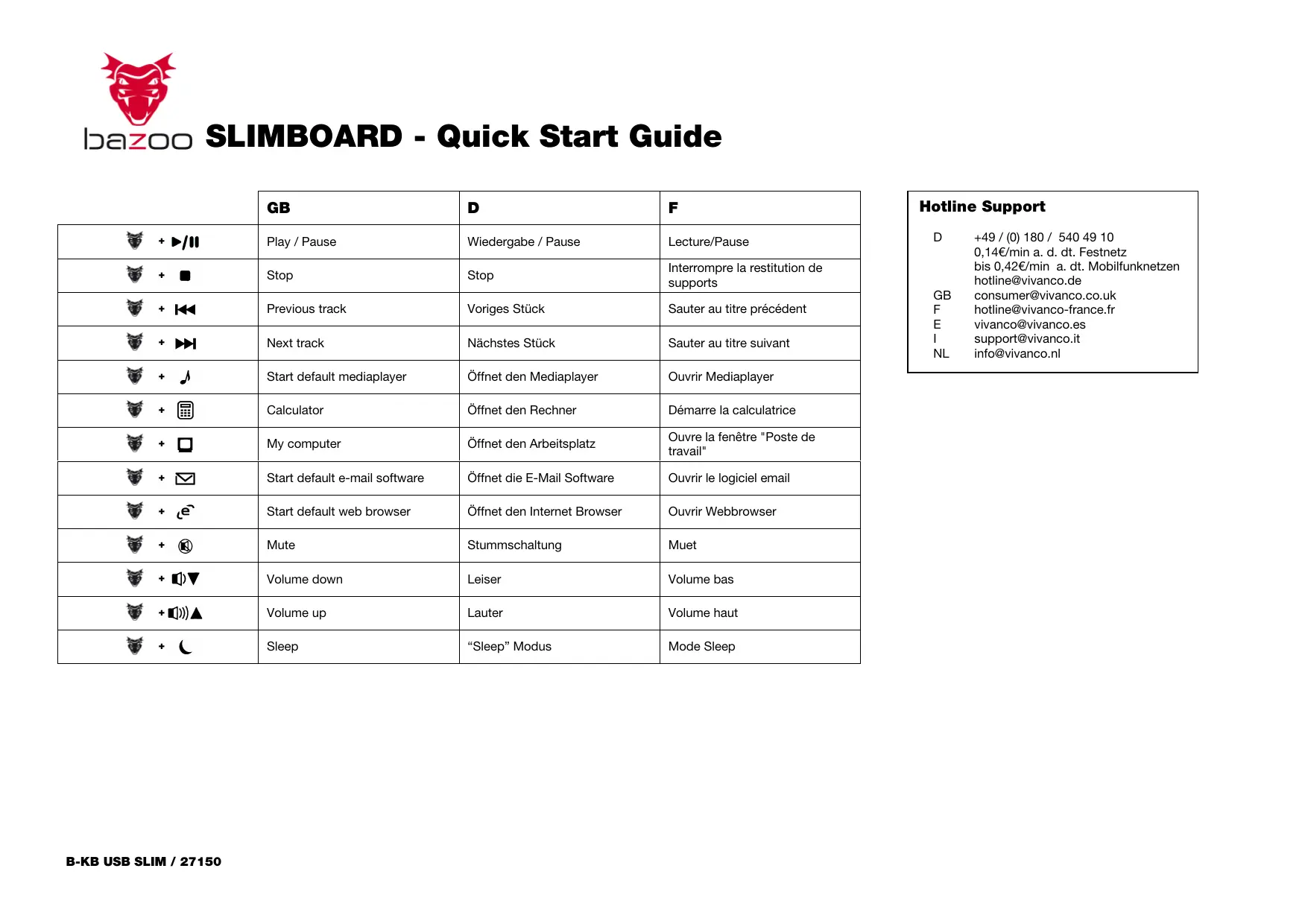 Retrouvez gratuitement la notice de l'appareil SLIMBOARD BAZOO au format PDF.