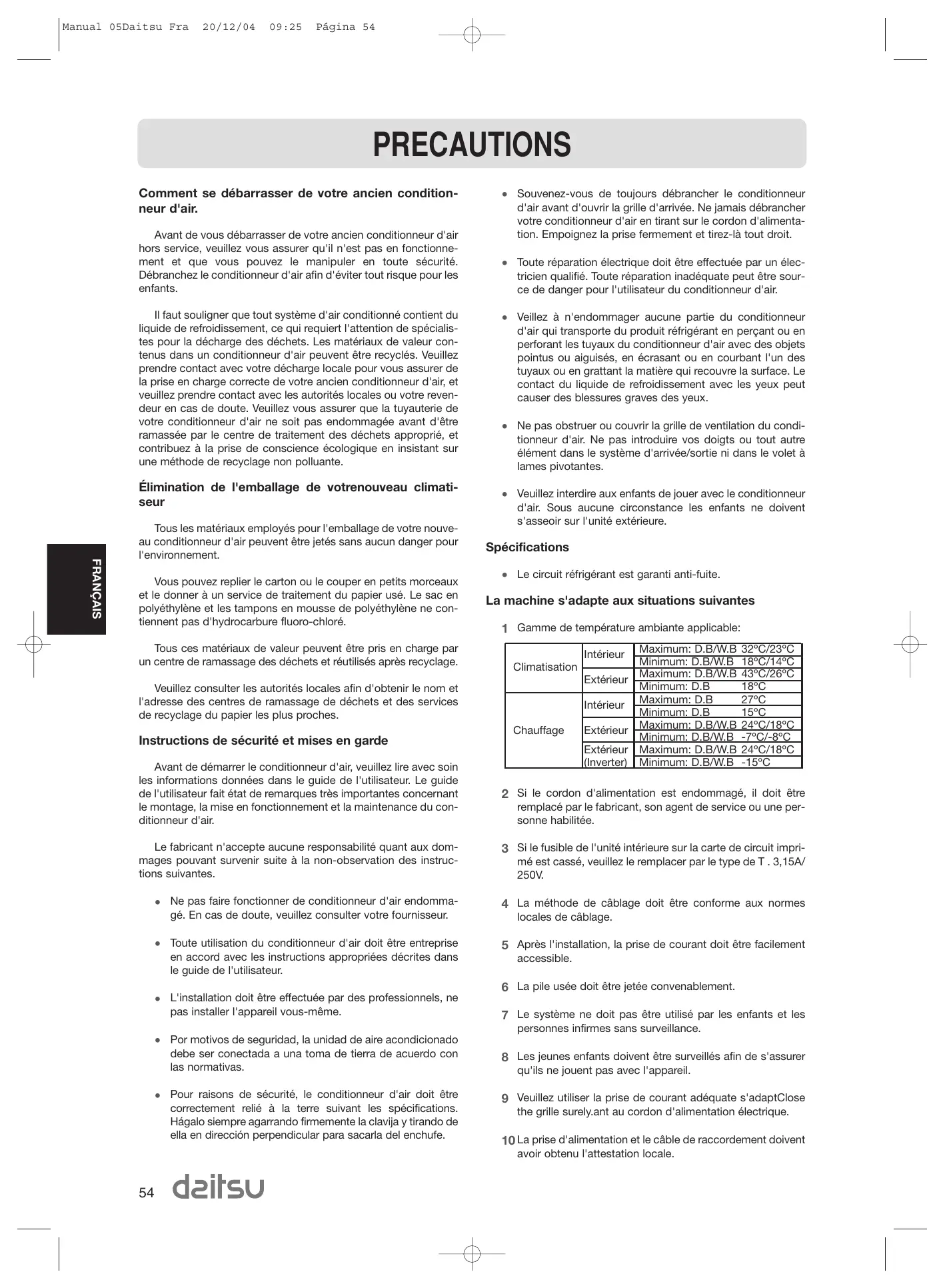 Manual O5Daitsu Fra 20/12/04 09:25 Pâgina 74 SIVÔNVEA ENTRETIEN Pour une bonne utilisation du conditionneur d'air