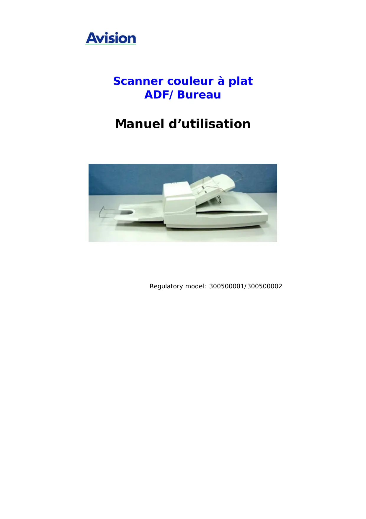 Avision Scanner couleur à plat ADF/ Bureau Manuel d'utilisation Regulatory model: 300500001/300500002