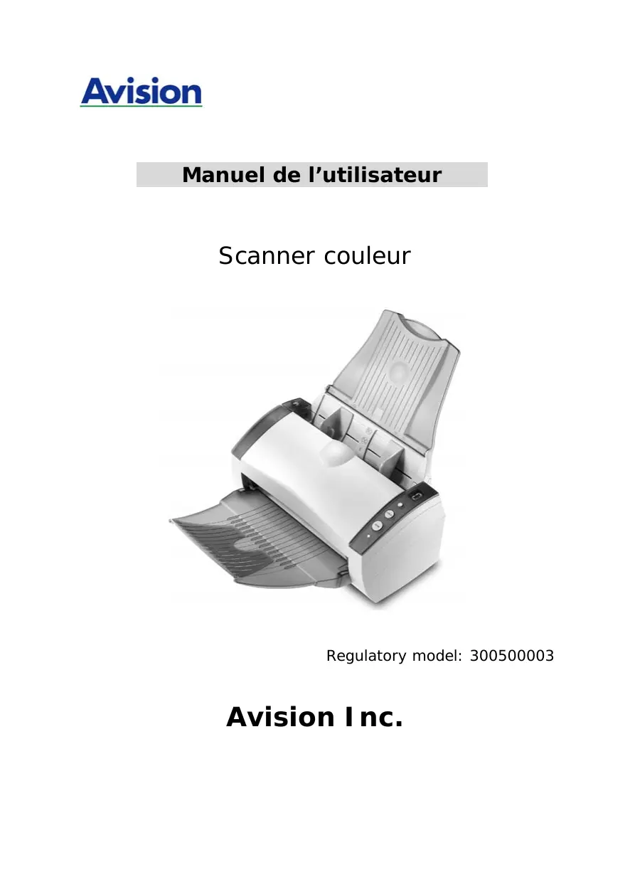 Tous droits réservés. Aucune partie de cette publication ne peut être reproductive, transmise, transcrite, stockée dans un système d'archivage, ou traduite dans n'importe qu'elle langue ou n'importe quel langage de programmation, sous n'importe qu'elle forme ou par n'importe quels moyens, électroniques, mécaniques, magnétiques, optiques, chimiques, manuels, ou autres, sans la permission par écrit de Avision Inc.