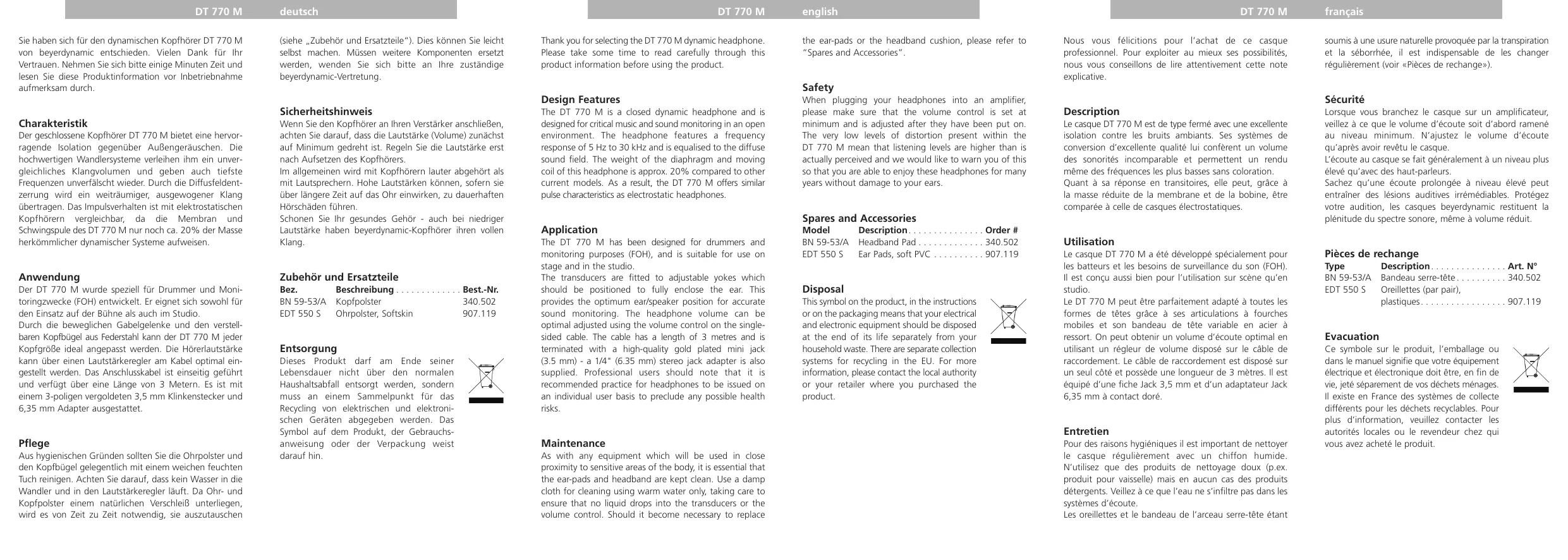 Retrouvez gratuitement la notice de l'appareil DT 770 M BEYERDYNAMIC au format PDF.