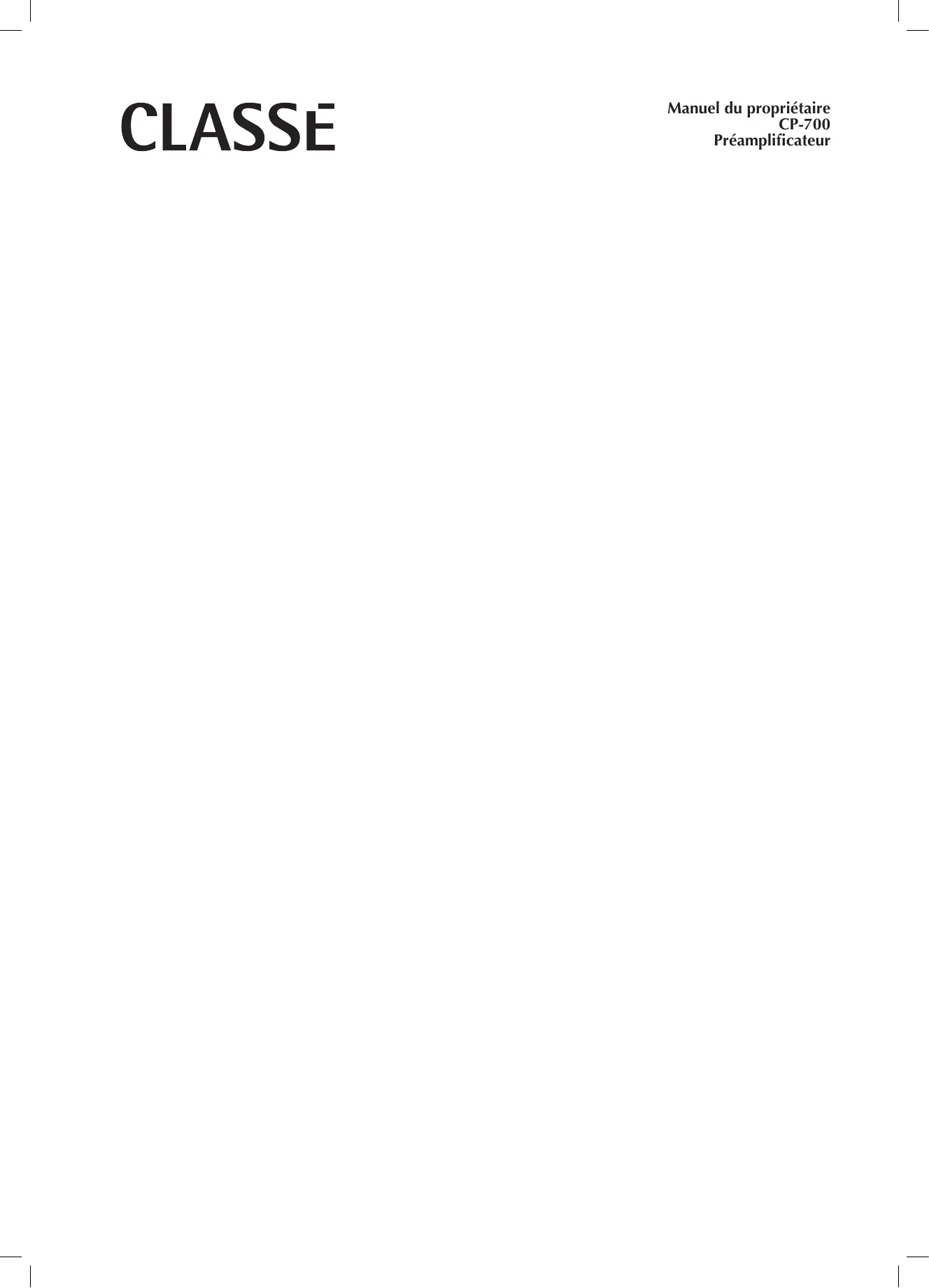 CP-700 - Matériel audio CLASSE AUDIO - Notice d'utilisation et mode d'emploi gratuit
