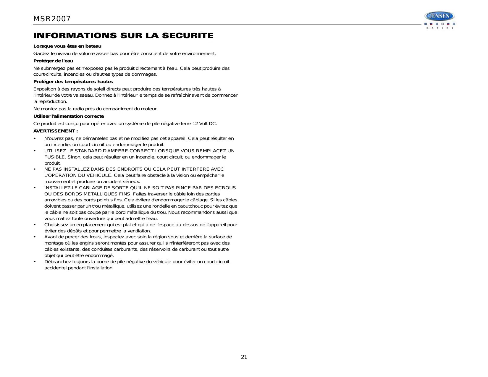 MODE D'EMPLOI MRS2007 JENSEN VOYAGER