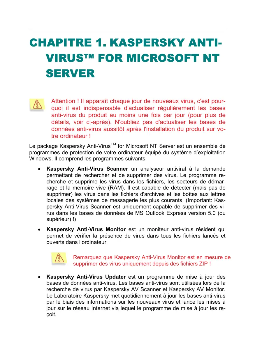 CHAPITRE 1. KASPERSKY ANTI-VIRUS™ FOR MICROSOFT NT SERVER......6