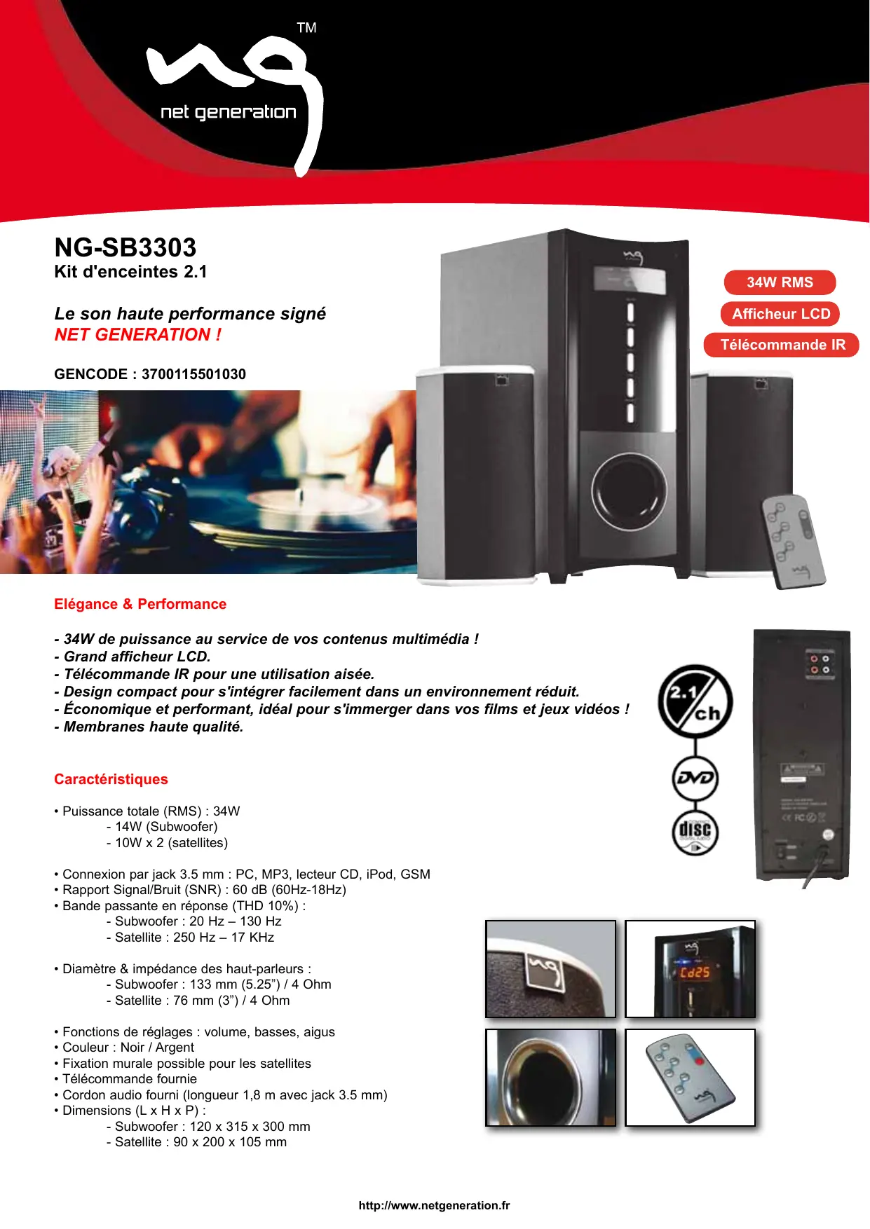 MODE D'EMPLOI NG-SB3303 NET GENERATION