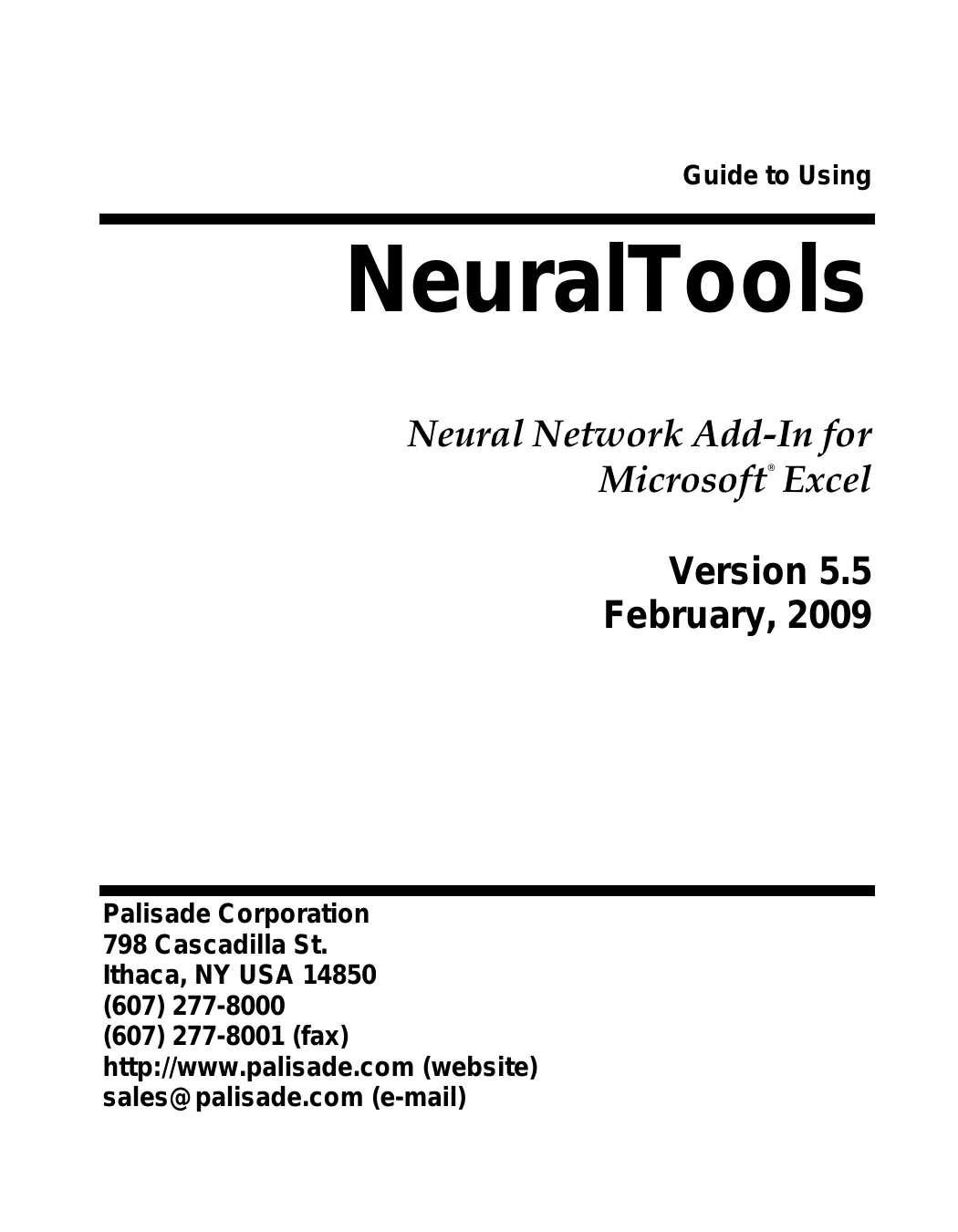 NEURALTOOLS 5.5 - Logiciel d'analyse de données PALISADE - Notice d'utilisation et mode d'emploi gratuit