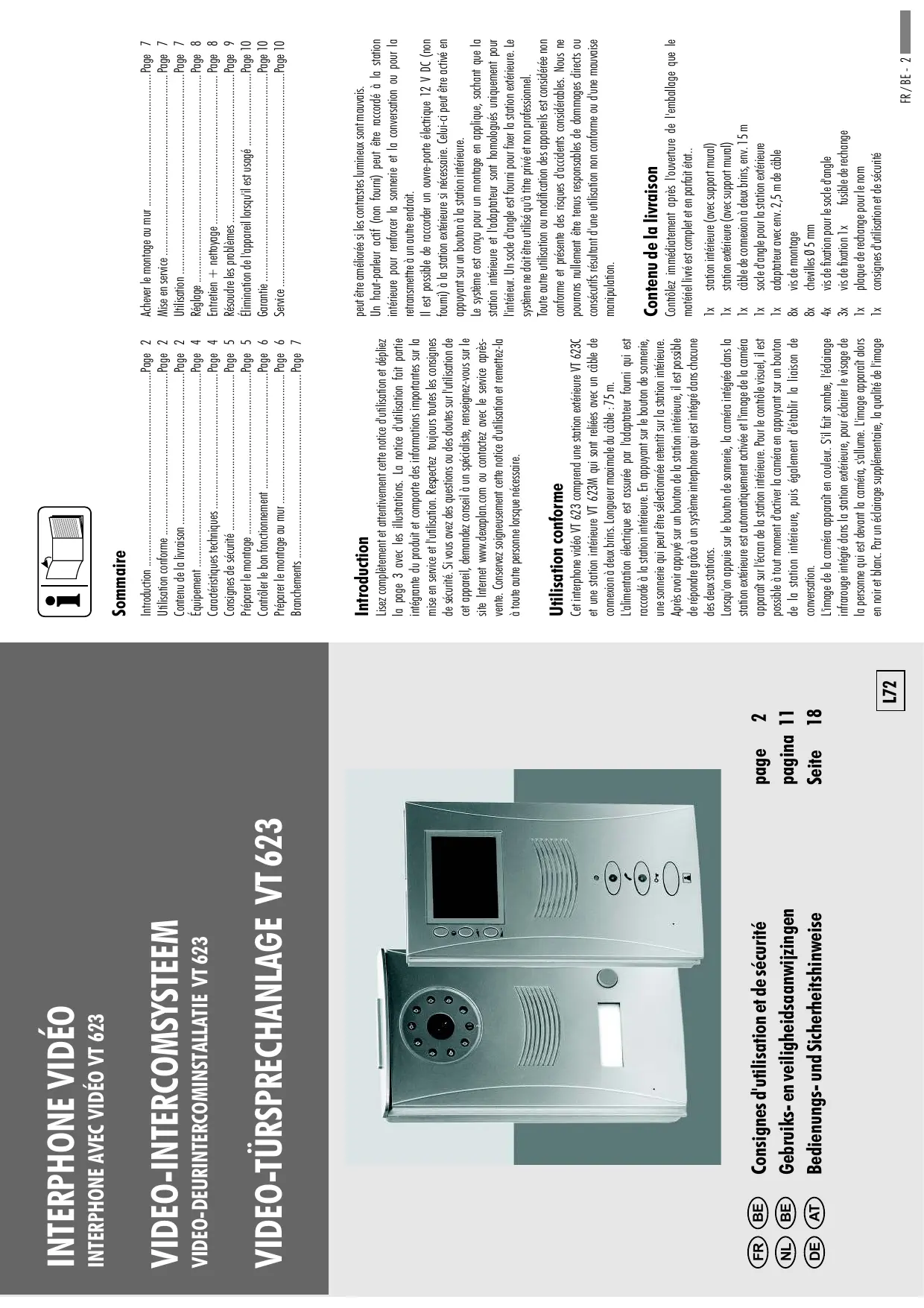 VT 623 - Interphone vidéo DEXAPLAN - Notice d'utilisation et mode d'emploi gratuit