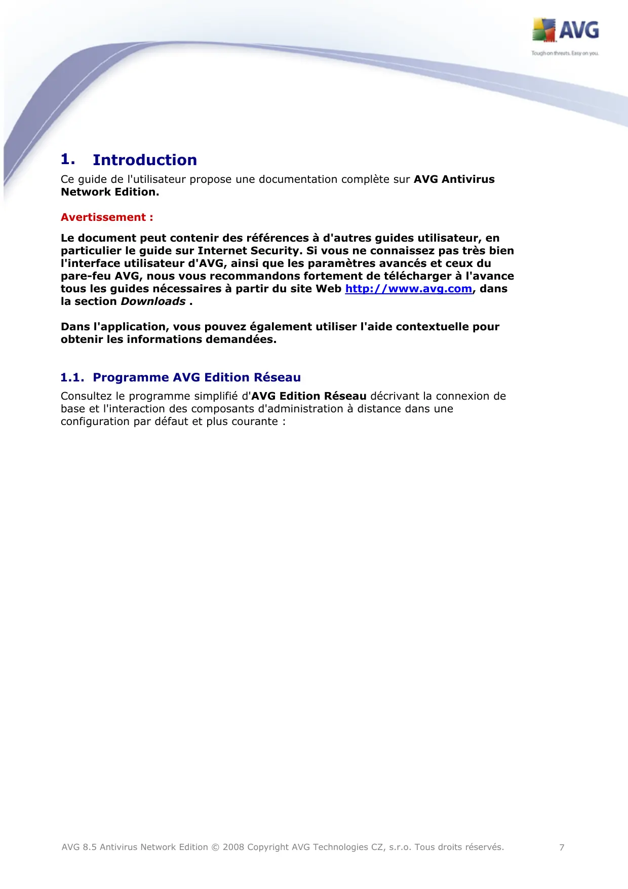 Introduction Ce guide de l'utilisateur propose une documentation complète sur AVG Antivirus Network Edition.