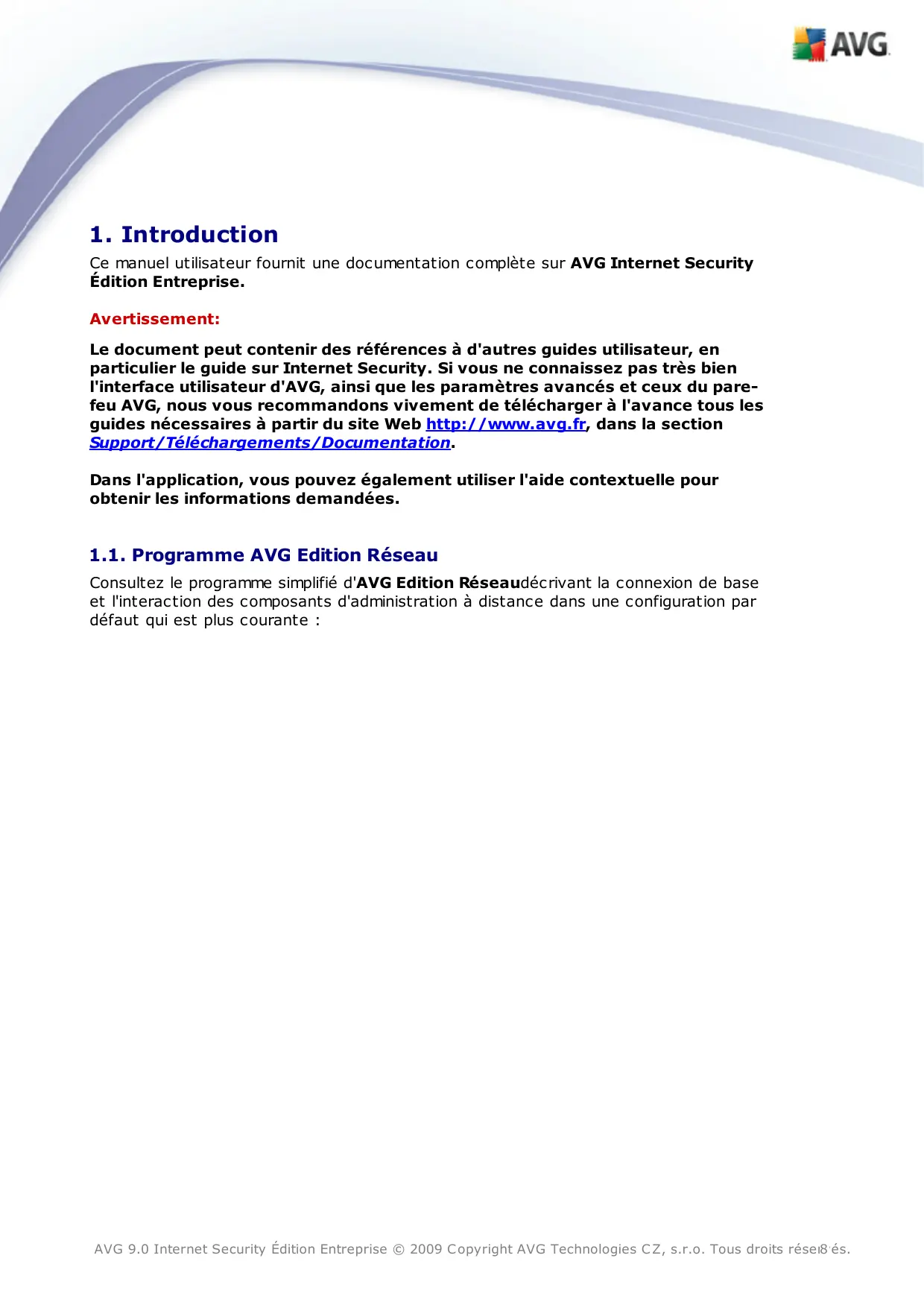AVG 9.0 Internet Security Édition Entreprise © 2009 Copyright AVG Technologies CZ, s.r.o. Tous droits rései2'és.