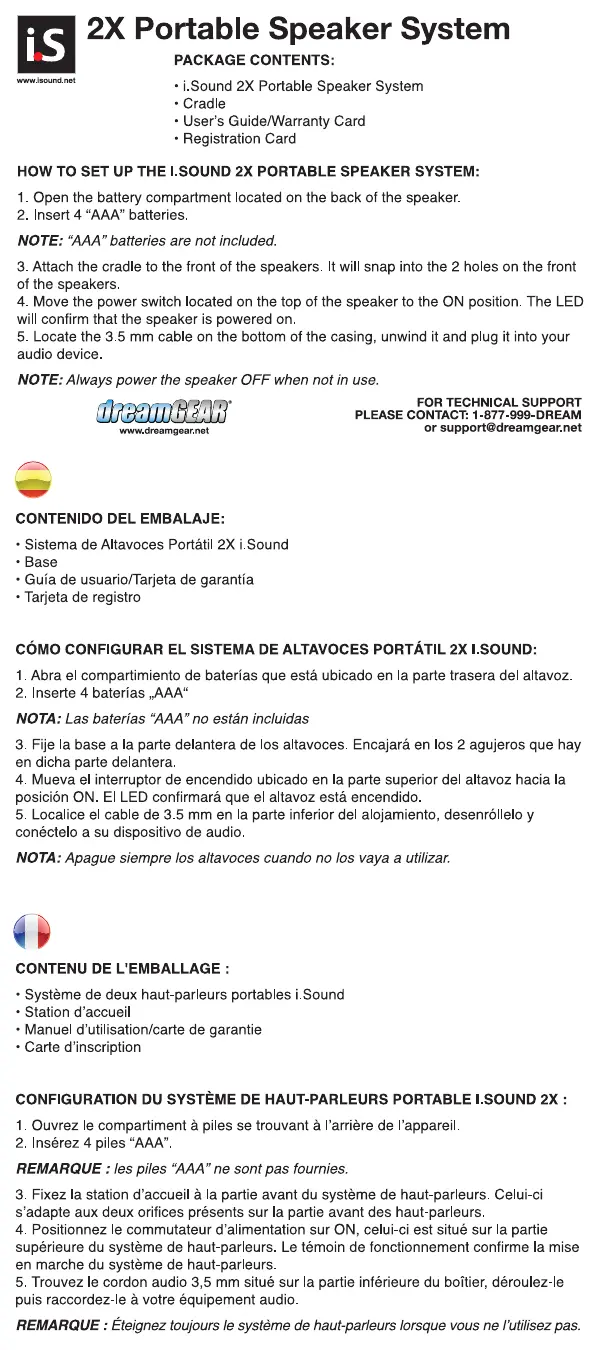 Retrouvez gratuitement la notice de l'appareil 2X PORTABLE SPEAKER SYSTEM ISOUND au format PDF.