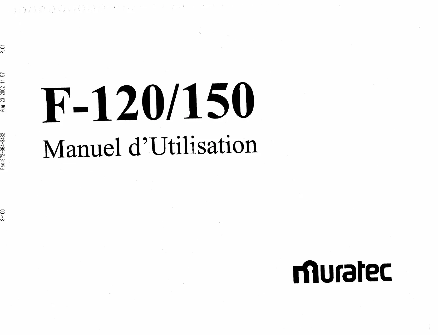 Retrouvez gratuitement la notice de l'appareil F-120 MURATEC au format PDF.
