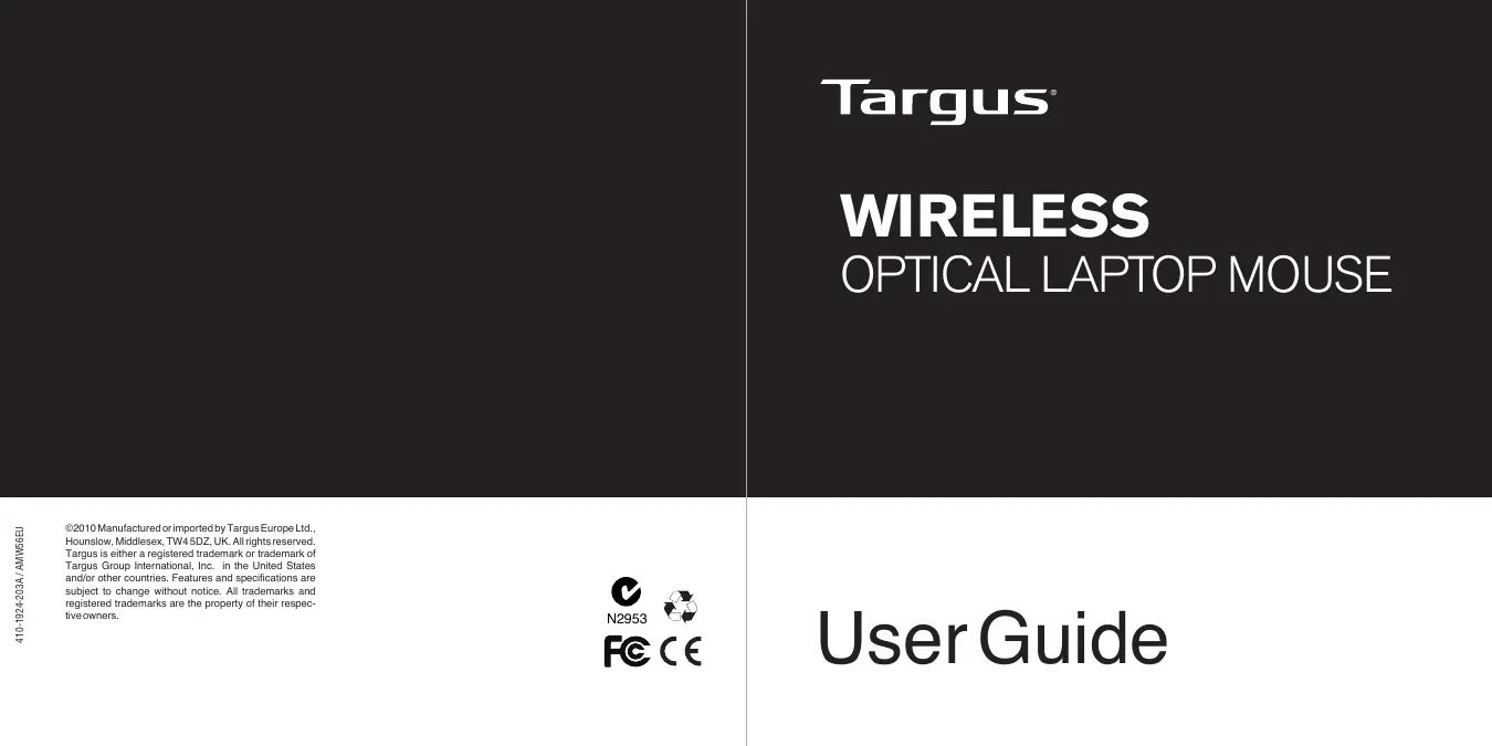 WIRELESS OPTICAL LAPTOP MOUSE - Souris sans fil TARGUS - Notice d'utilisation et mode d'emploi gratuit