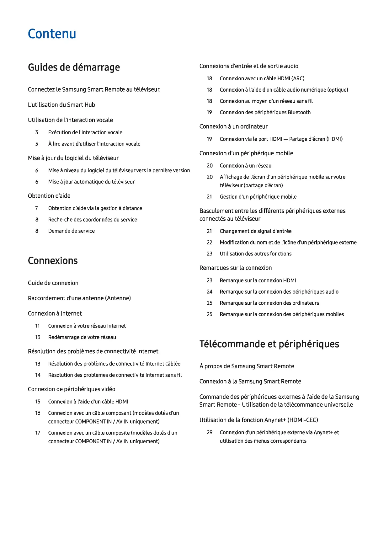 Résolution des problèmes de connectivité Internet sans fil À propos de Samsung Smart Remote Connexion à la Samsung Smart Remote Connexion de périphériques vidéo