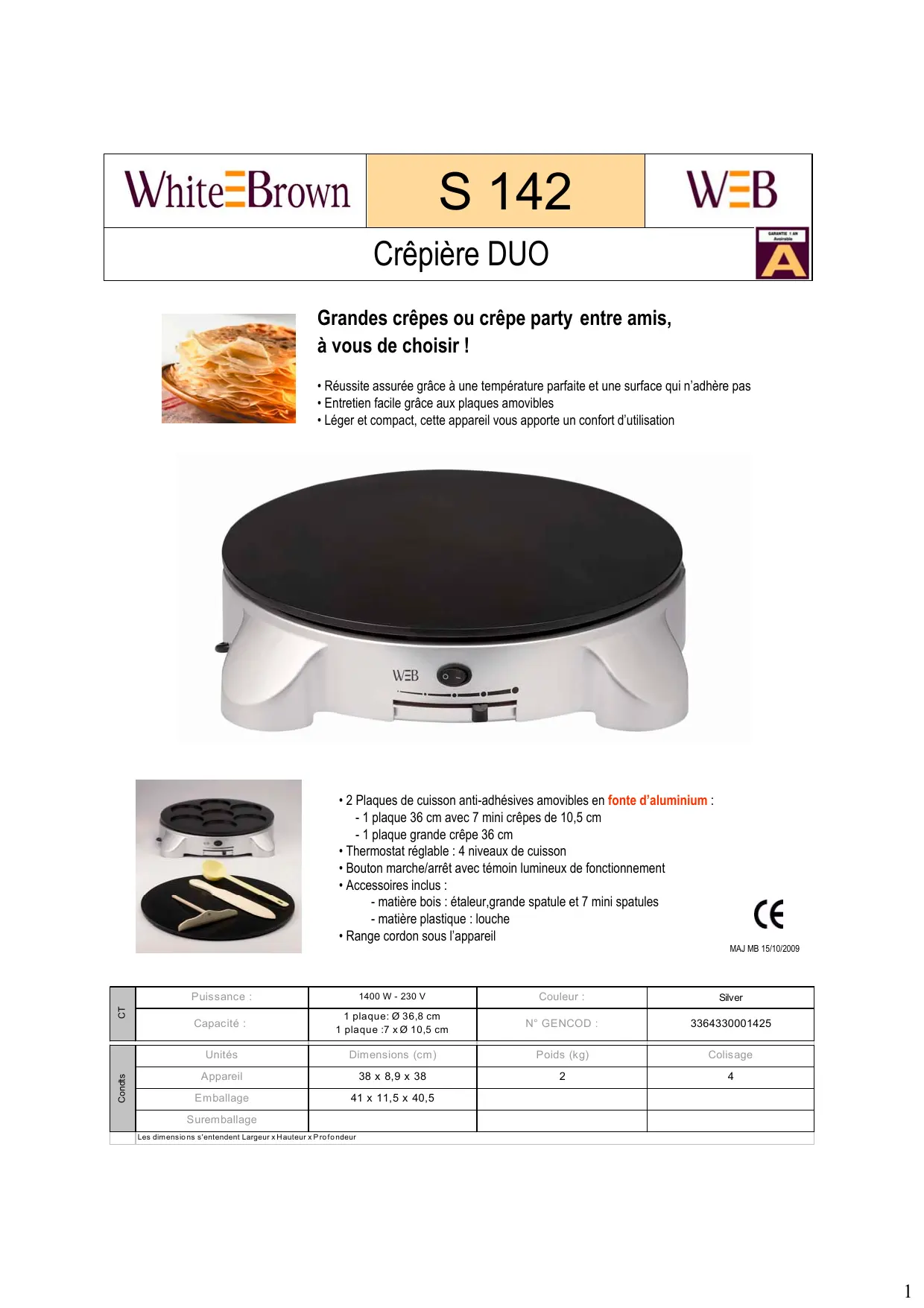S 142 - Appareil à crêpes WHITE & BROWN - Notice d'utilisation et mode d'emploi gratuit