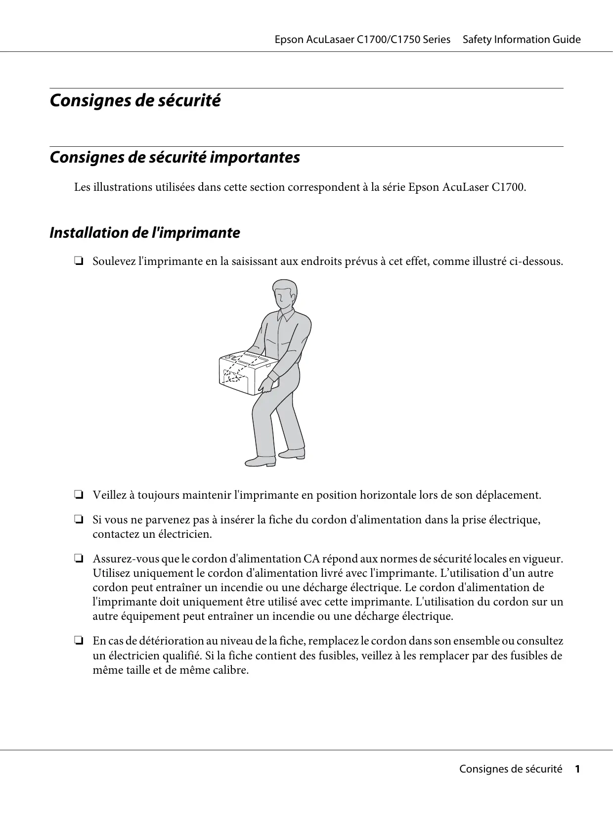 Epson AcuLasaer C1700/C1750 Series Safety Information Guide