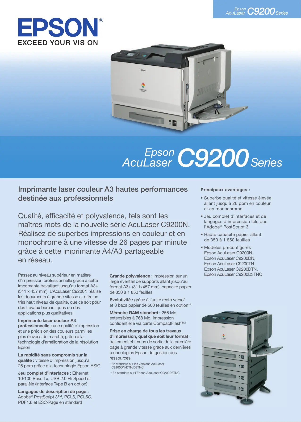 (811 x 457 mm). L'AcuLaser C9200N réalise les documents à grande vitesse et offre un très haut niveau de qualité, que ce soit pour des travaux bureautiques ou des applications plus qualitatives.