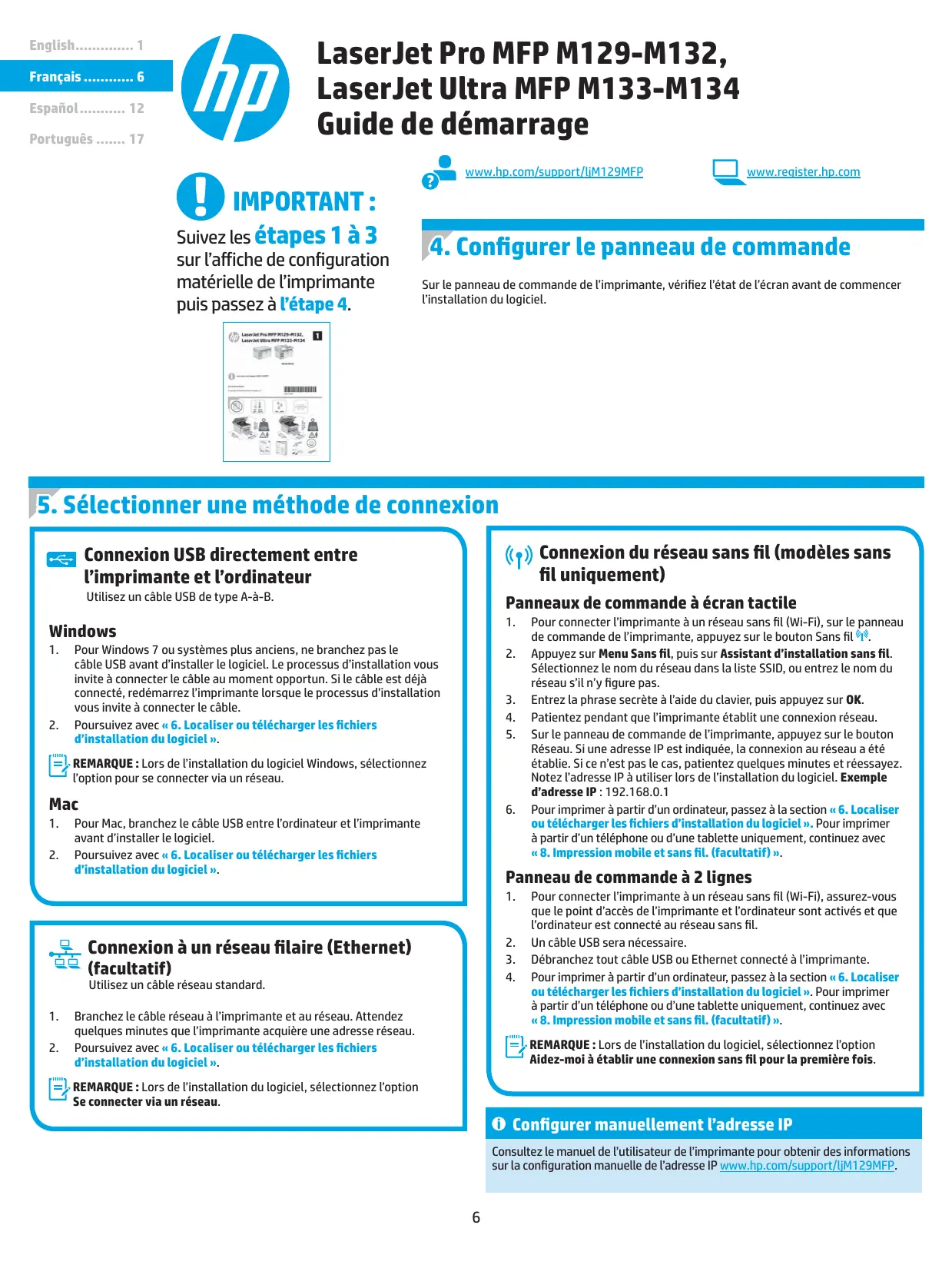 LASERJET PRO MFP M130FW - Imprimante multifonction laser HP - Notice d'utilisation et mode d'emploi gratuit
