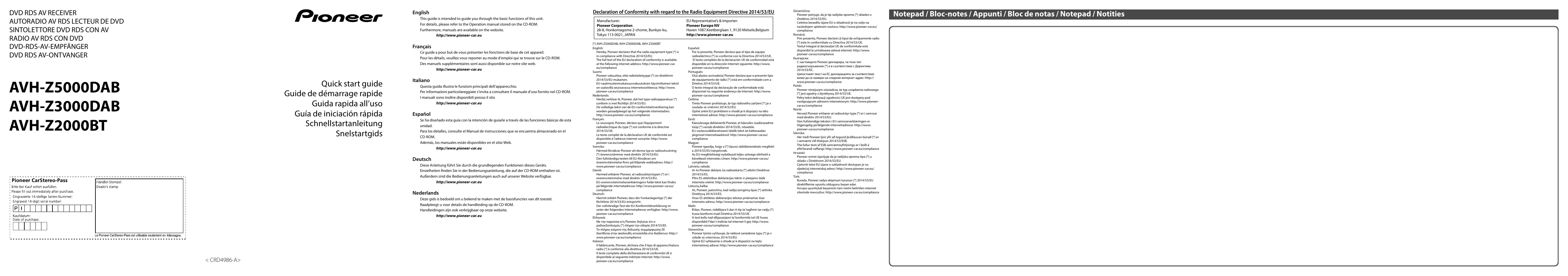 Téléchargez la notice de votre Autoradio multimédia au format PDF gratuitement ! Retrouvez votre notice AVH-Z5000DAB - PIONEER et reprennez votre appareil électronique en main. Sur cette page sont publiés tous les documents nécessaires à l'utilisation de votre appareil AVH-Z5000DAB de la marque PIONEER.
