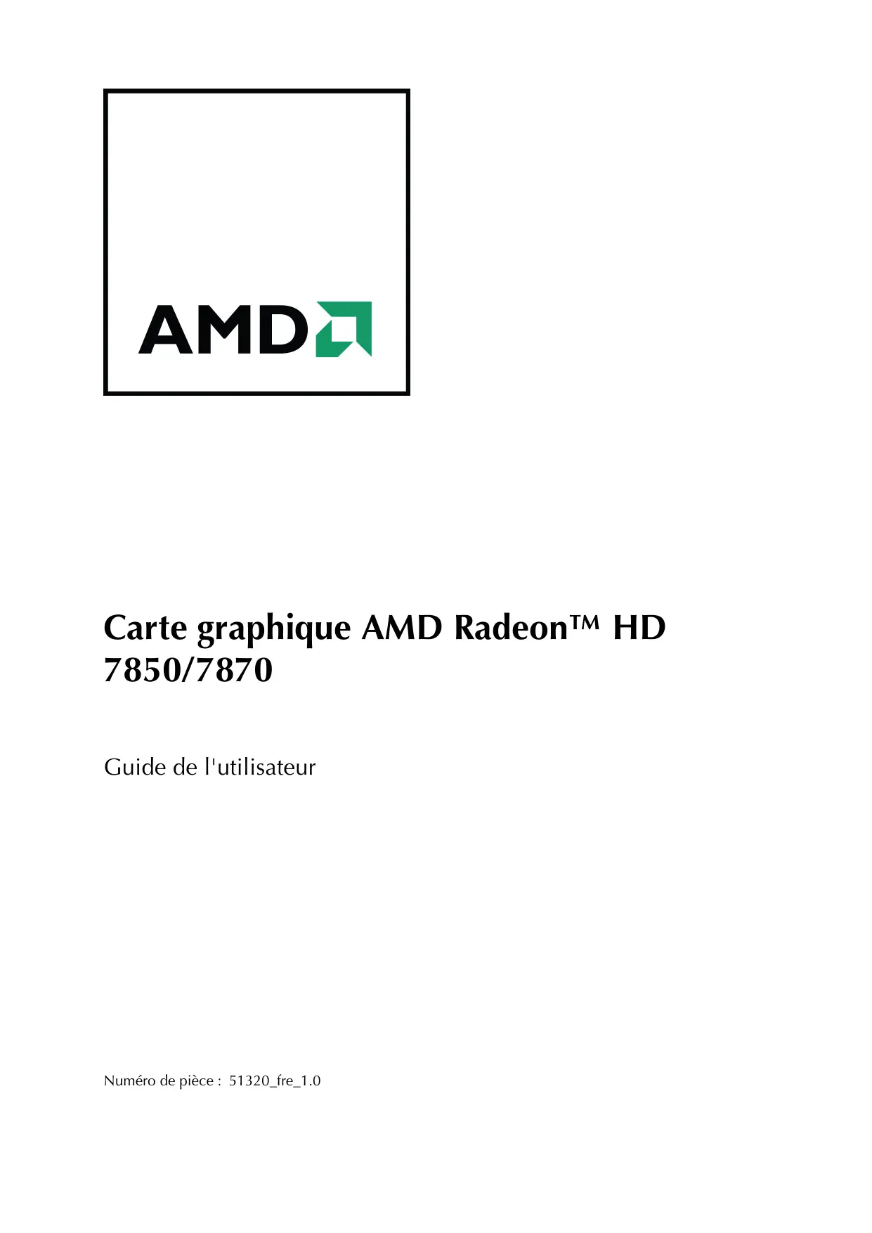 Carte graphique AMD Radeon™ HD 7850/7870 Guide de l'utilisateur Numéro de pièce : 51320_fre_1.0