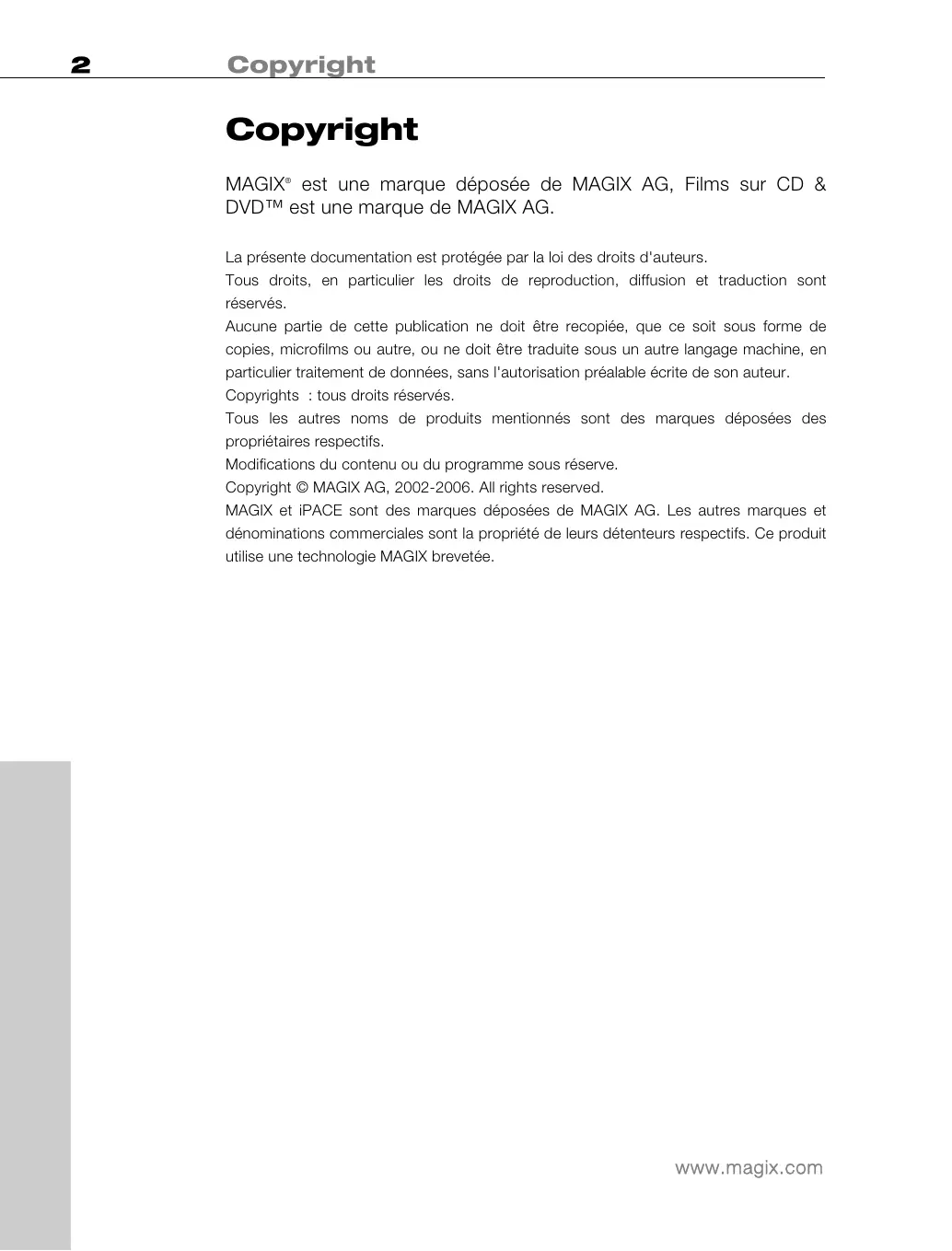 MAGIX® est une marque déposée de MAGIX AG, Films sur CD & DVD™ est une marque de MAGIX AG.