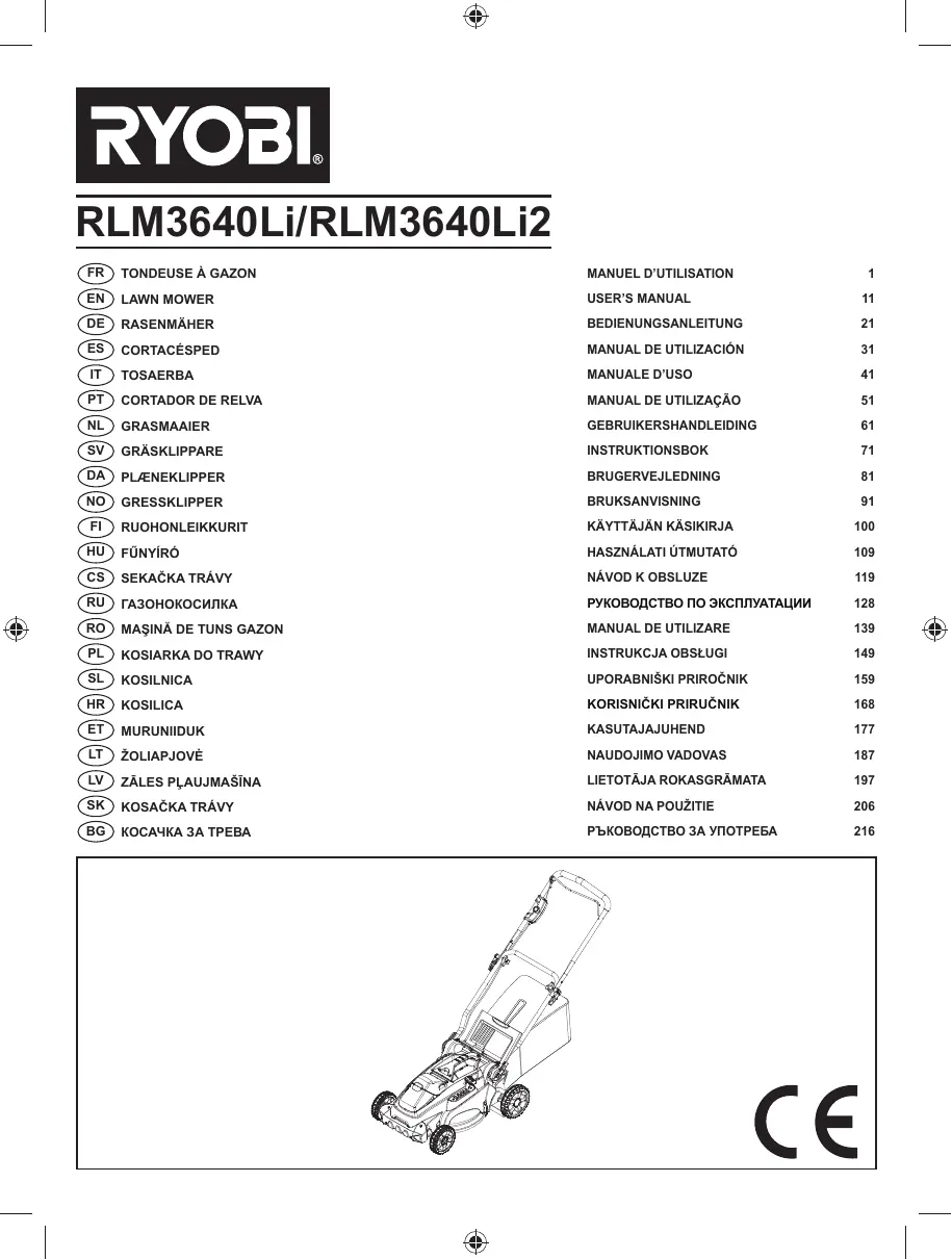 RLM3640LI-1 - Tondeuse à gazon RYOBI - Notice d'utilisation et mode d'emploi gratuit