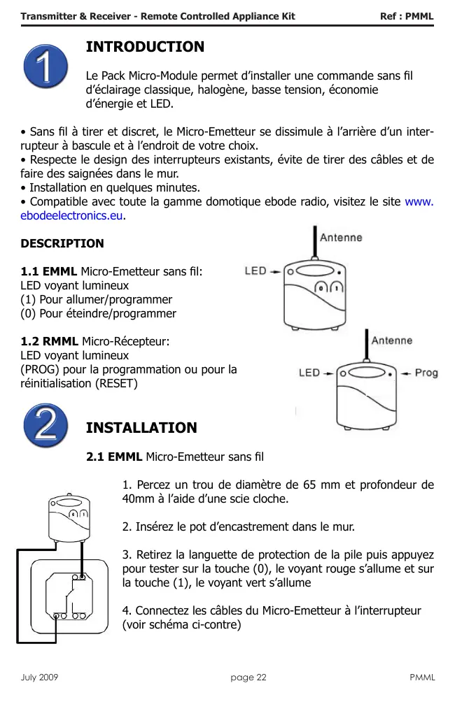 1.1 EMML Micro-Emetteur sans fil: LED voyant lumineux