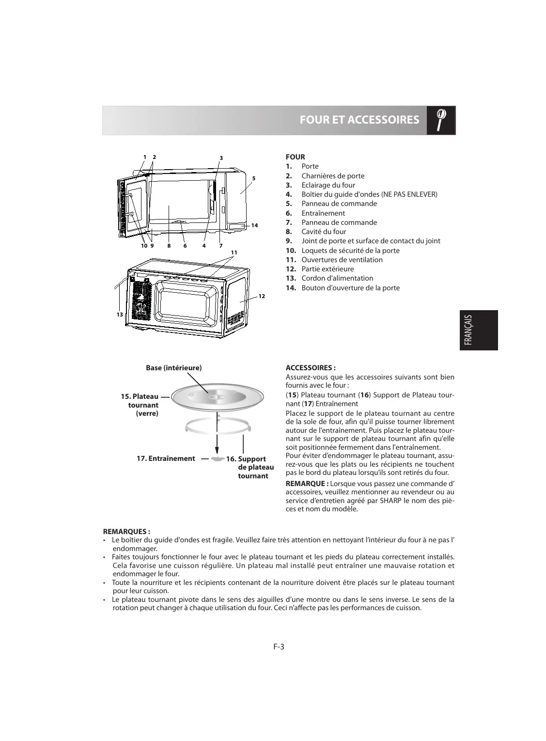 REMARQUE: Lorsque vous passez une commande d'accessoires, veuillez mentionner au revendeur ou au service d'entretien agreé par SHARP le nom des pièces et nom du modele.