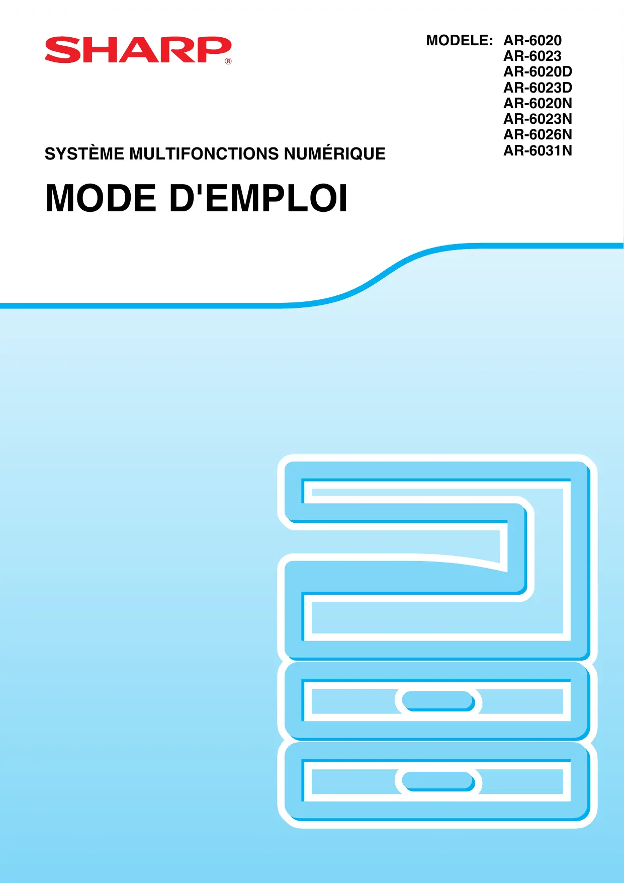 Ce mode d'emploi décrit les fonctions de copie, d'impression et de numérisation des systèmes multifonctions numériques AR-6020/AR-6023, AR-6020D/AR-6023D, AR-6020N/AR-6023N et AR-6026N/AR-6031N. Il explique également comment configurer les paramètres réseau pour utiliser l'appareil en tant qu'imprimante et scanner réseau.