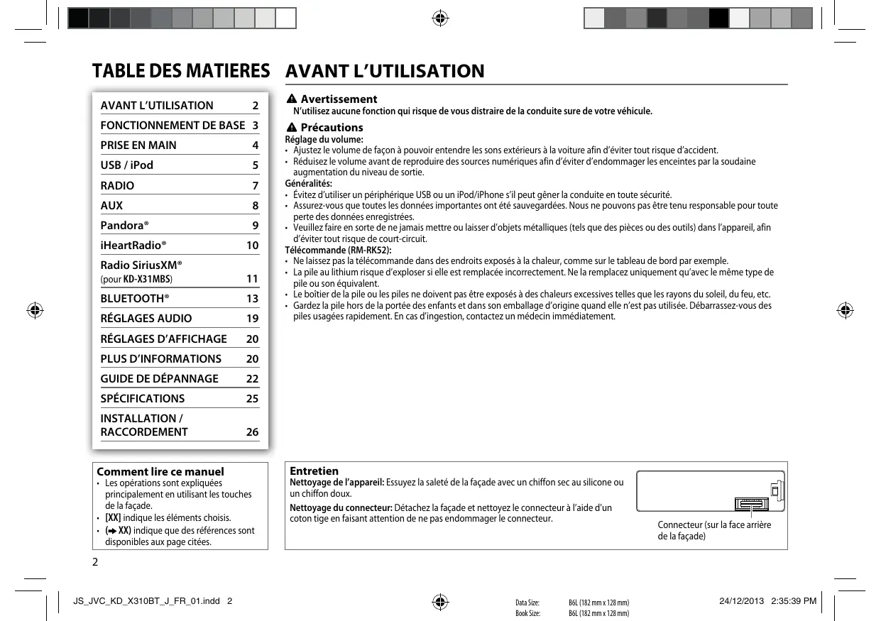 Retrouvez gratuitement la notice de l'appareil KD-X310BT JVC au format PDF.