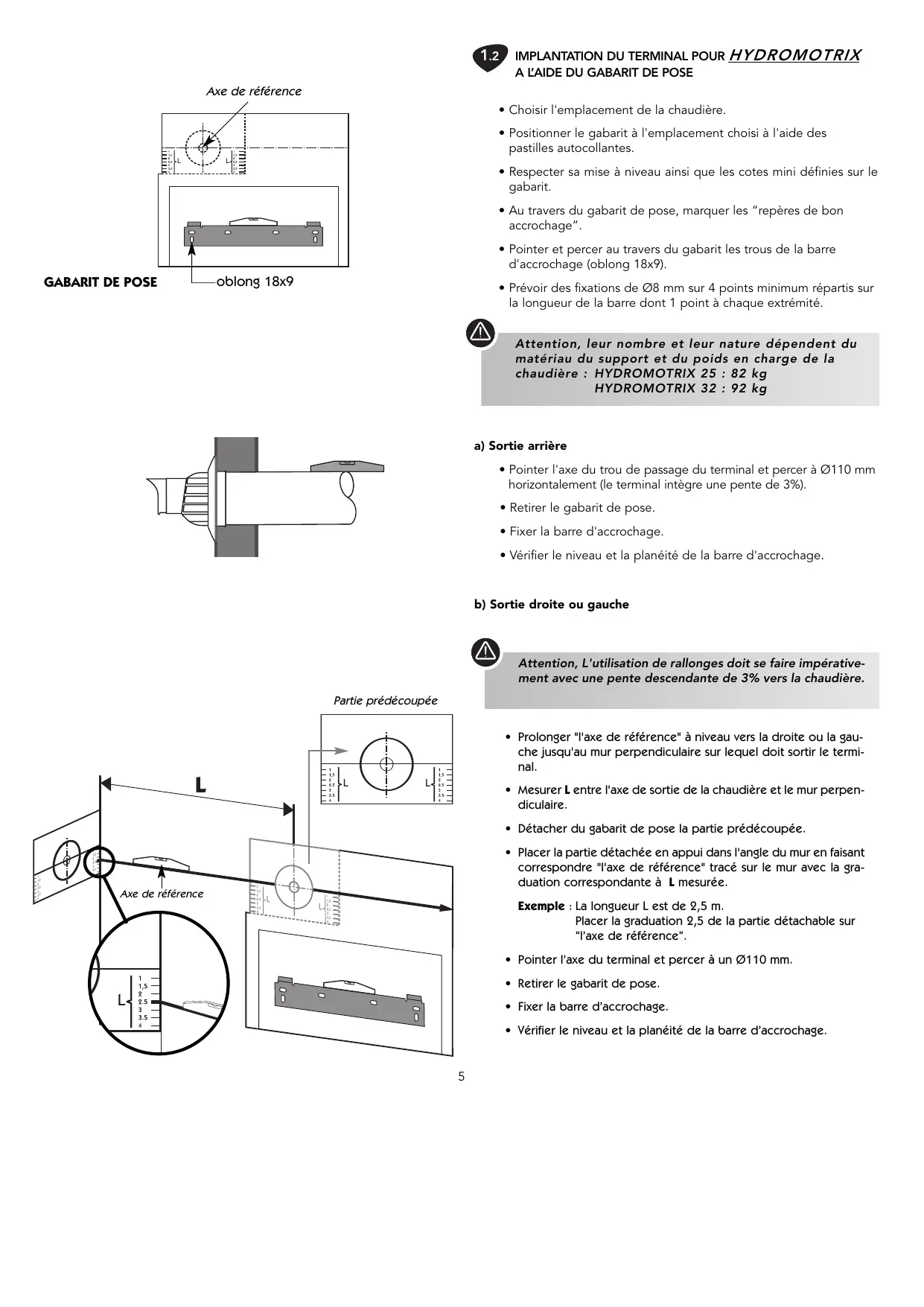 a) Sortie arrière . . . . . . . . . . . . . . . . . . . . . . . . . . . . . . . . . . . . . . . . . . . . . . . . . . . . . . . . . . . . .5 b) Sortie droite ou gauche . . . . . . . . . . . . . . . . . . . . . . . . . . . . . . . . . . . . . . . . . . . . . . . . . . . . .5 1.3 Accrochage de la chaudière hydromotrix . . . . . . . . . . . . . . . . . . . . . . . . . . . . . . . . . . . . . . . . .6