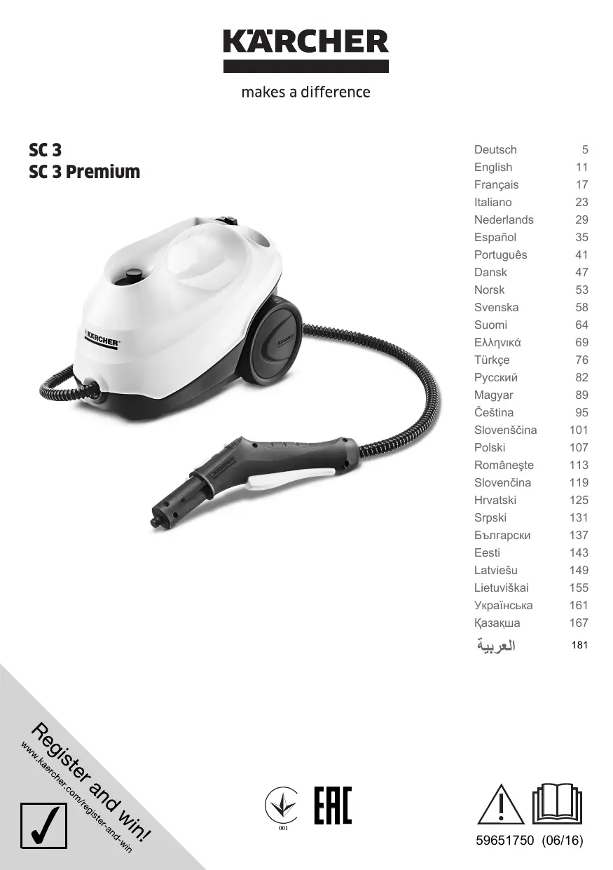 Retrouvez gratuitement la notice de l'appareil SC3 KARCHER au format PDF.