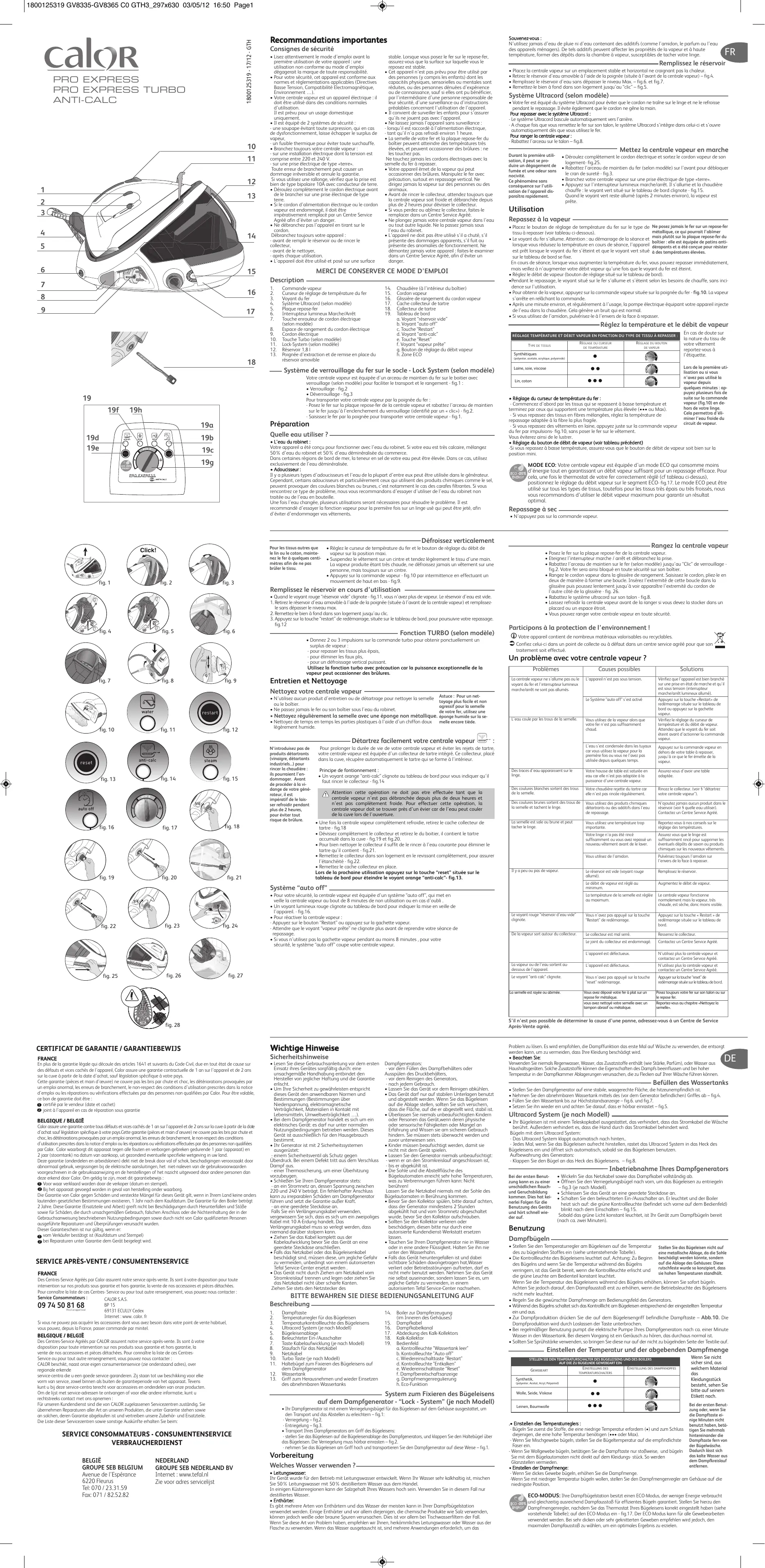 Téléchargez la notice de votre Fer à repasser vapeur au format PDF gratuitement ! Retrouvez votre notice PRO EXPRESS TURBO GV8319C0 - CALOR et reprennez votre appareil électronique en main. Sur cette page sont publiés tous les documents nécessaires à l'utilisation de votre appareil PRO EXPRESS TURBO GV8319C0 de la marque CALOR.