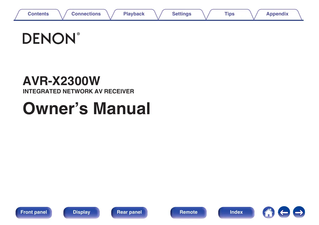 Téléchargez la notice de votre Récepteur audio/vidéo au format PDF gratuitement ! Retrouvez votre notice AVRX2300 - DENON et reprennez votre appareil électronique en main. Sur cette page sont publiés tous les documents nécessaires à l'utilisation de votre appareil AVRX2300 de la marque DENON.
