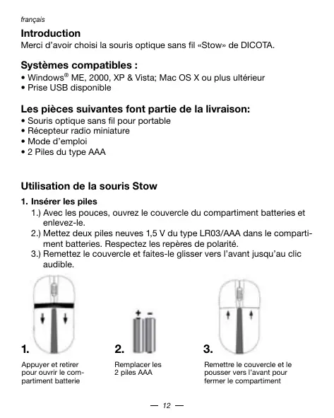 - Ne mettz pas une nouvelle et une petite pile dans la souris. Utilisez des piles neuves de la même marque.