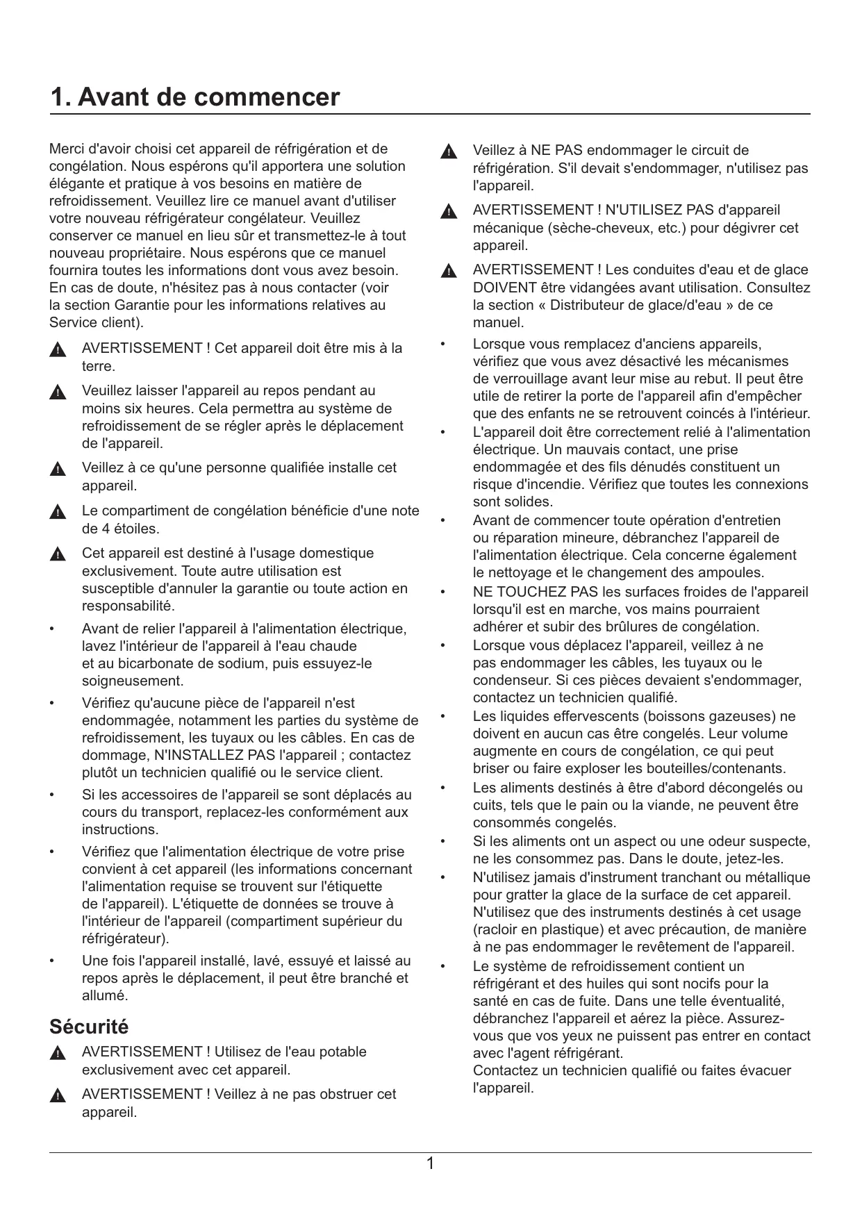 Merci d'avoir choisi cet appareil de réfrigération et de congélation. Nous espérons qu'il apportera une solution élégante et pratique à vos besoins en matière de refroidissement. Veuillez lire ce manuel avant d'utiliser votre nouveau réfrigérateur congélateur. Veuillez conserver ce manuel en lieu sûr et transmettez-le à tout nouveau propriétaire. Nous espérons que ce manuel fournira toutes les informations dont vous avez besoin. En cas de doute, n'hésitez pas à nous contacter (voir la section Garantie pour les informations relatives au Service client).