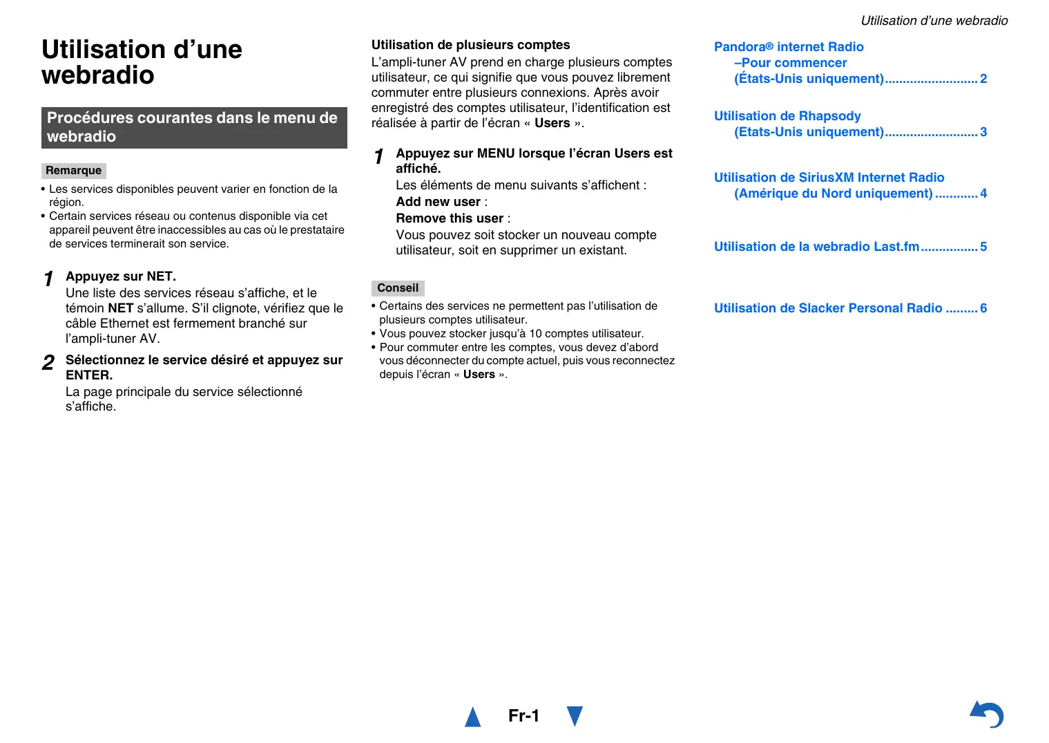 Rhapsody. Si vous ne disposez pas encore d'un compte, vous pouvez en créer un à partir de www.rhapsody.com/onkyo