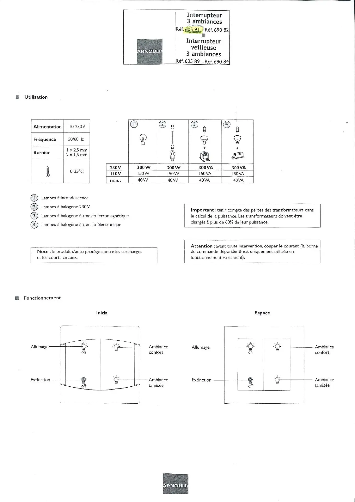 Téléchargez la notice de votre Interrupteur électrique au format PDF gratuitement ! Retrouvez votre notice 690-84 - ARNOULD et reprennez votre appareil électronique en main. Sur cette page sont publiés tous les documents nécessaires à l'utilisation de votre appareil 690-84 de la marque ARNOULD.
