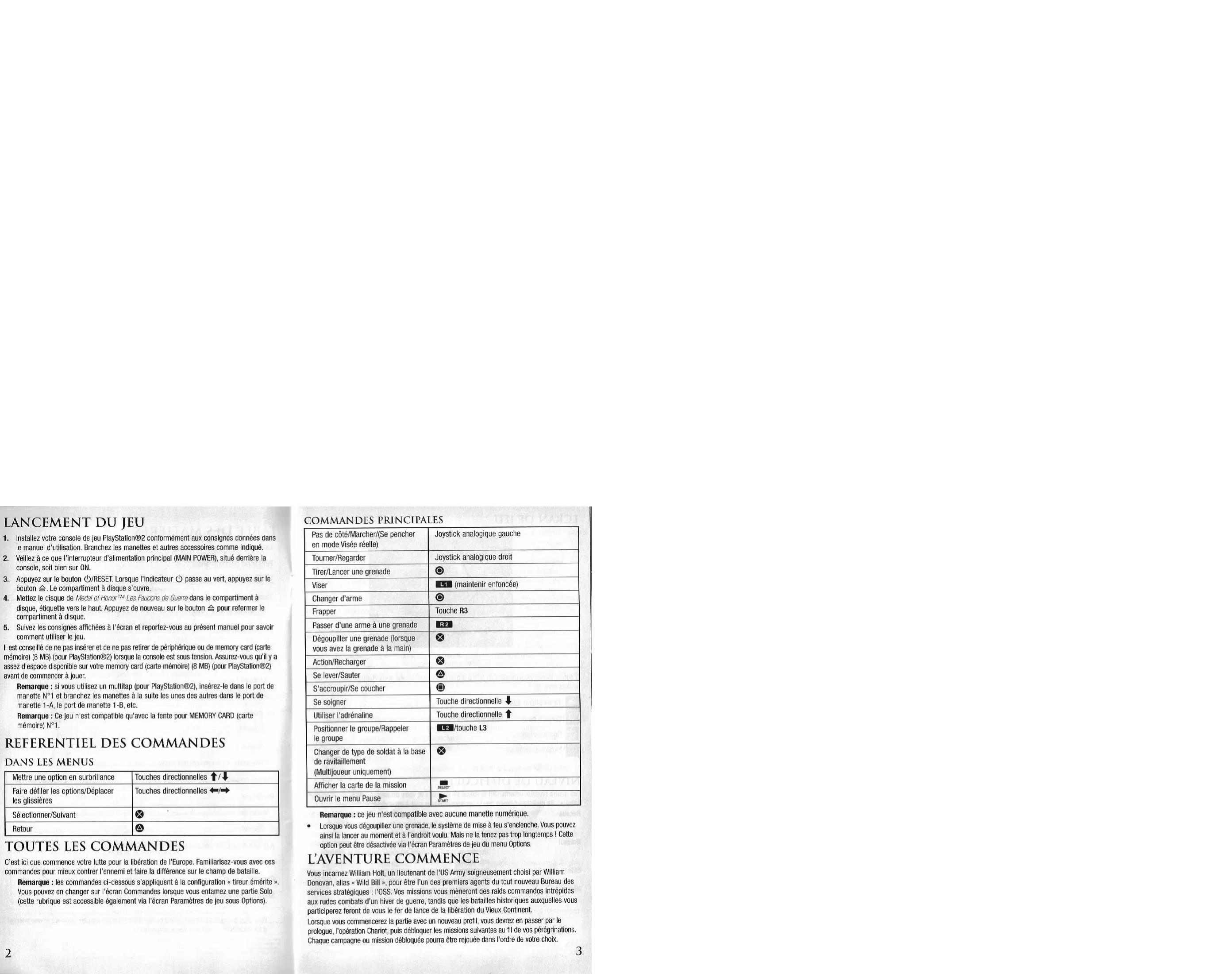 MODE D'EMPLOI MEDAL OF HONOR-FAUCONS DE GUERRE GAMES PS2