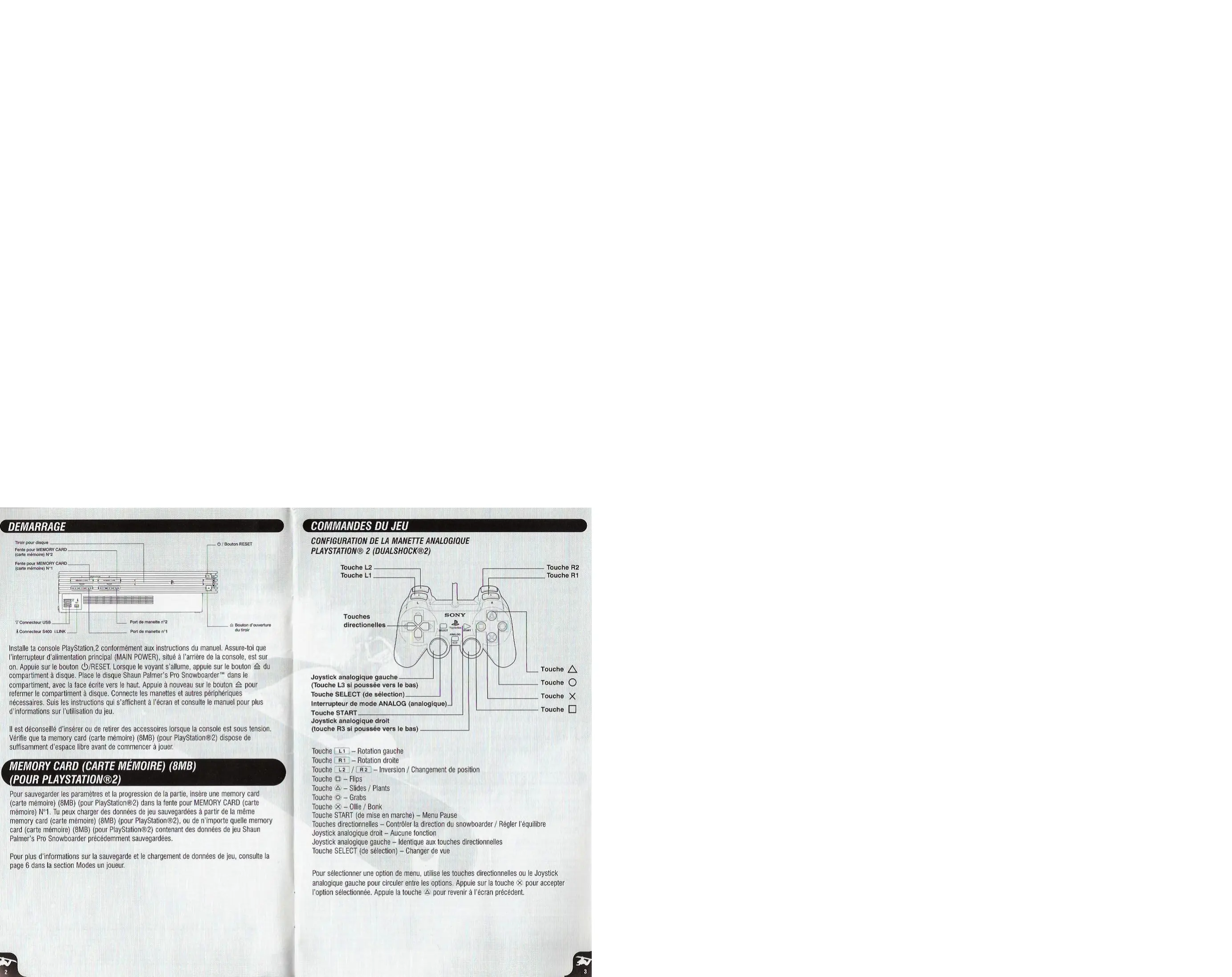 MODE D'EMPLOI SHAUN PALMER PRO SNOWBOARD GAMES PS2
