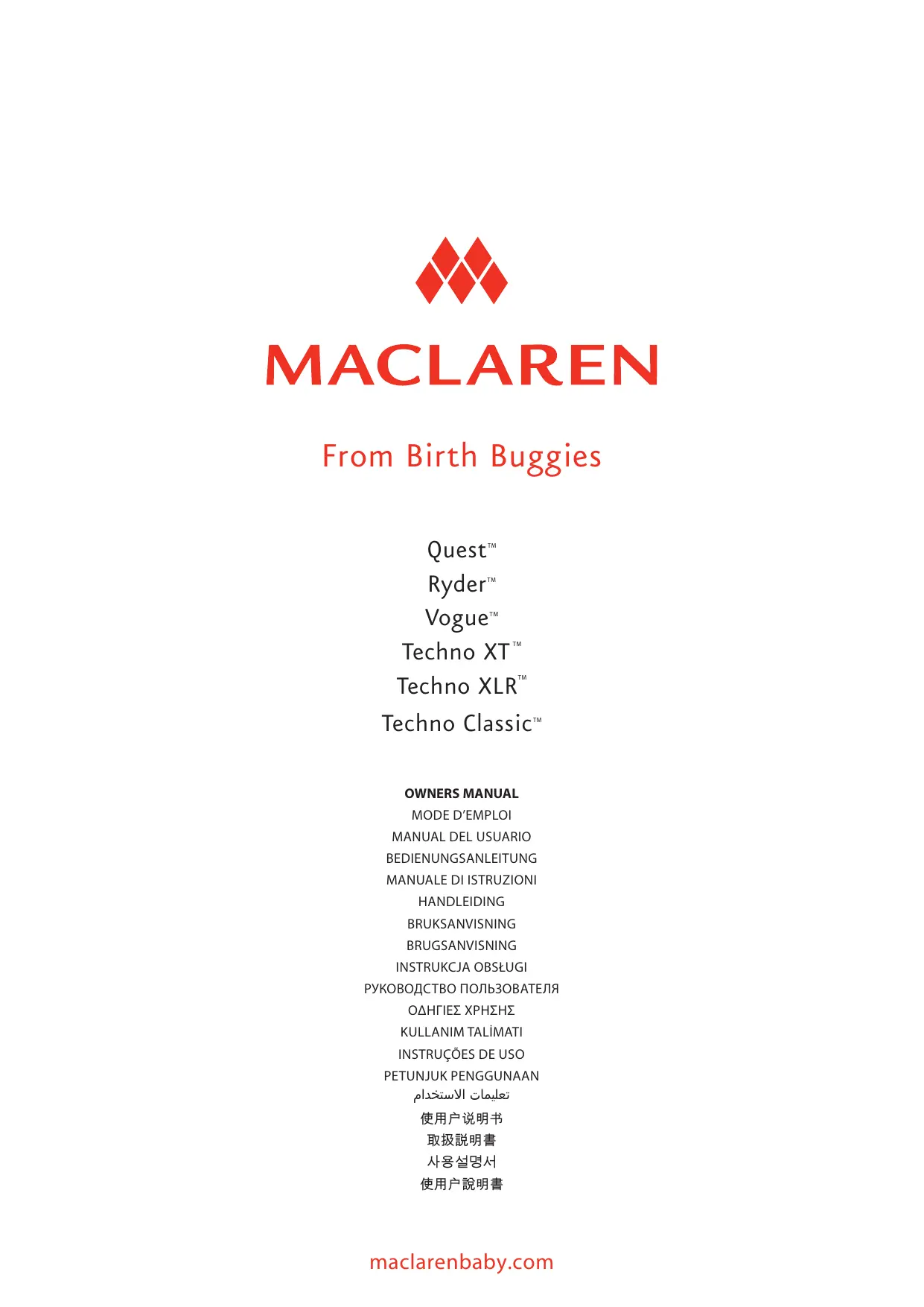 TECHNO XLR - Poussette MACLAREN - Notice d'utilisation et mode d'emploi gratuit
