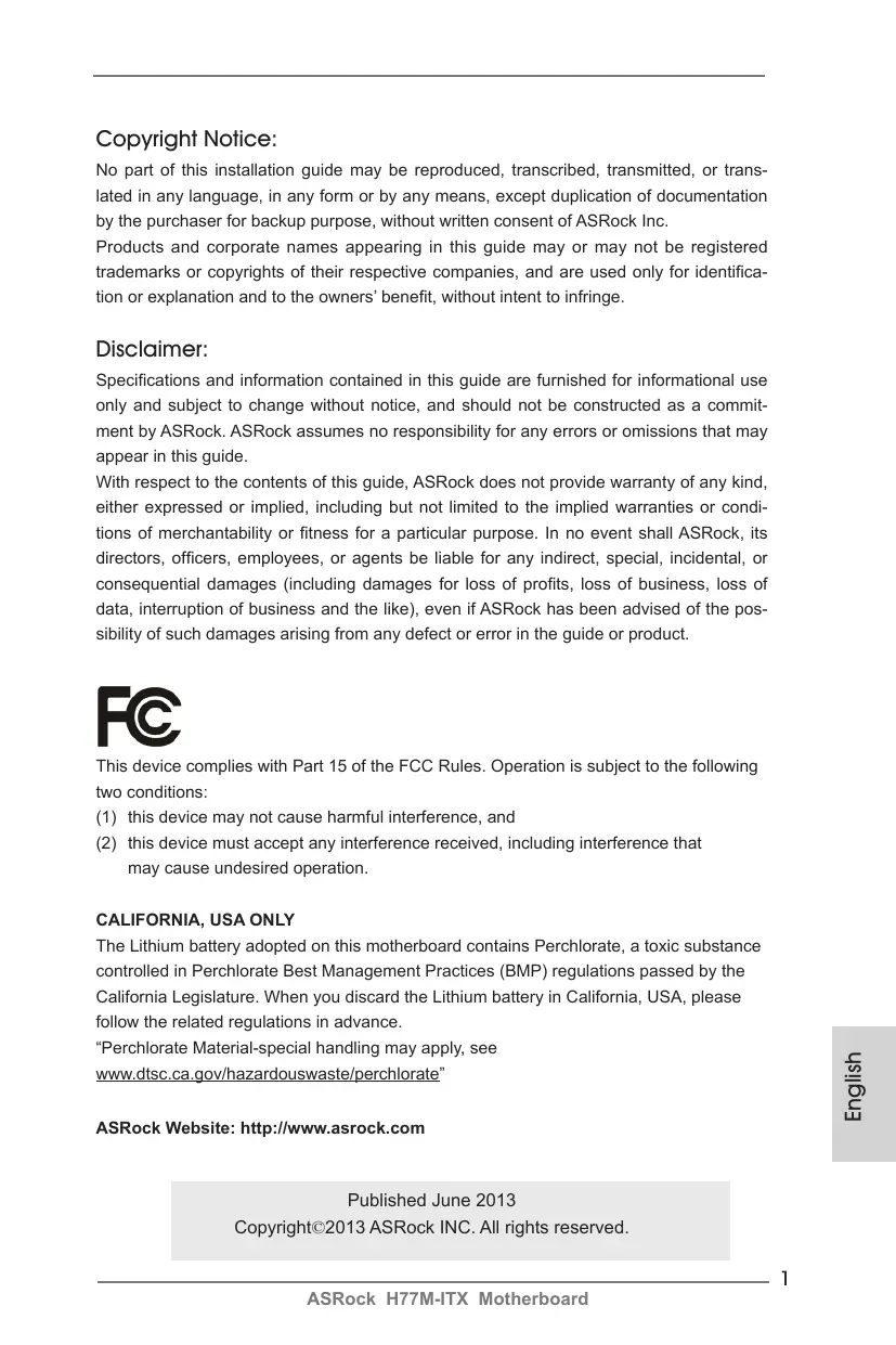 Retrouvez gratuitement la notice de l'appareil H77M ASROCK au format PDF.
