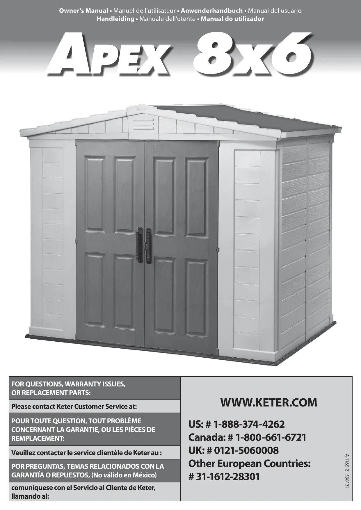 APEX 8X6 - Abri de jardin KETER - Notice d'utilisation et mode d'emploi gratuit